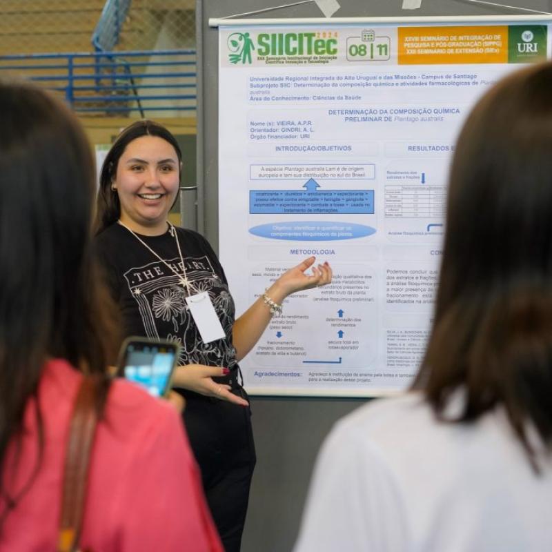 A URI Santiago esteve representada por projetos de destaque, com acadêmicos e Professores da Instituição apresentando suas pesquisas e inovações em diversas áreas. A bolsista Andressa Perini Piecha, sob orientação da professora Ana Paula Belochio Thomas, apresentou o trabalho "Grupo de Formação de Professores para o Acompanhamento de Estudantes TDH", que foi premiado na área de Educação. O projeto tem como foco a capacitação de professores para melhor acompanhamento de alunos com Transtorno de Déficit de Atenção e Hiperatividade (TDAH), uma temática importante para a inclusão escolar e o aprimoramento da educação.