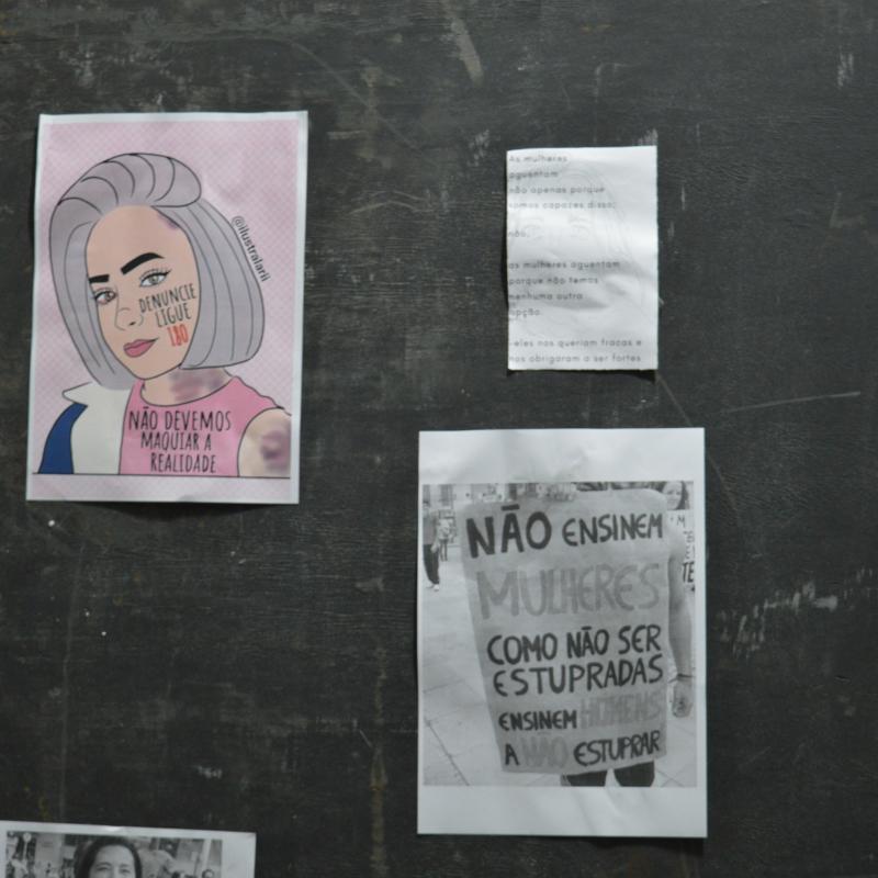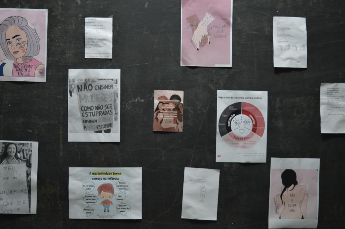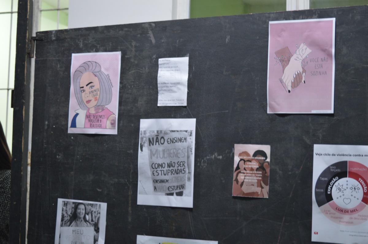 A escolha do material exposto teve um olhar mais atento, das acadêmicas de Psicologia, Leandra Urach, do 10° semestre e Gabriele Moreira, do 8° semestre. As estudantes buscaram por ilustrações e dizeres, que tocassem a consciência tanto de mulheres, como de homens.
