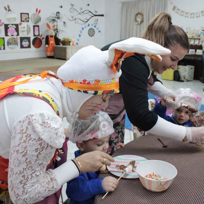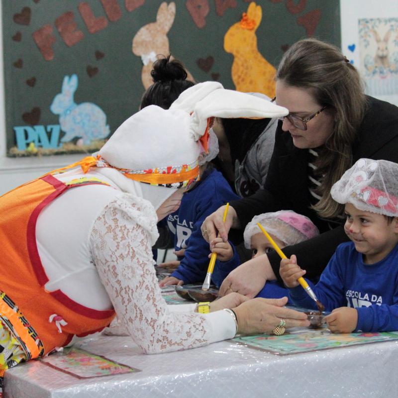Durante as atividades, os estudantes participam de jogos educativos, partilham guloseimas, momentos de leitura e contação de histórias temáticas. O ponto alto é a fabricação dos próprios ovos de Páscoa na "Cozinha da Dona Coelha", espaço lúdico onde os alunos colocam a mão na massa. Os chocolates produzidos são depois acomodados em cestas confeccionadas pelas crianças com materiais reciclados, unindo a sustentabilidade à celebração.