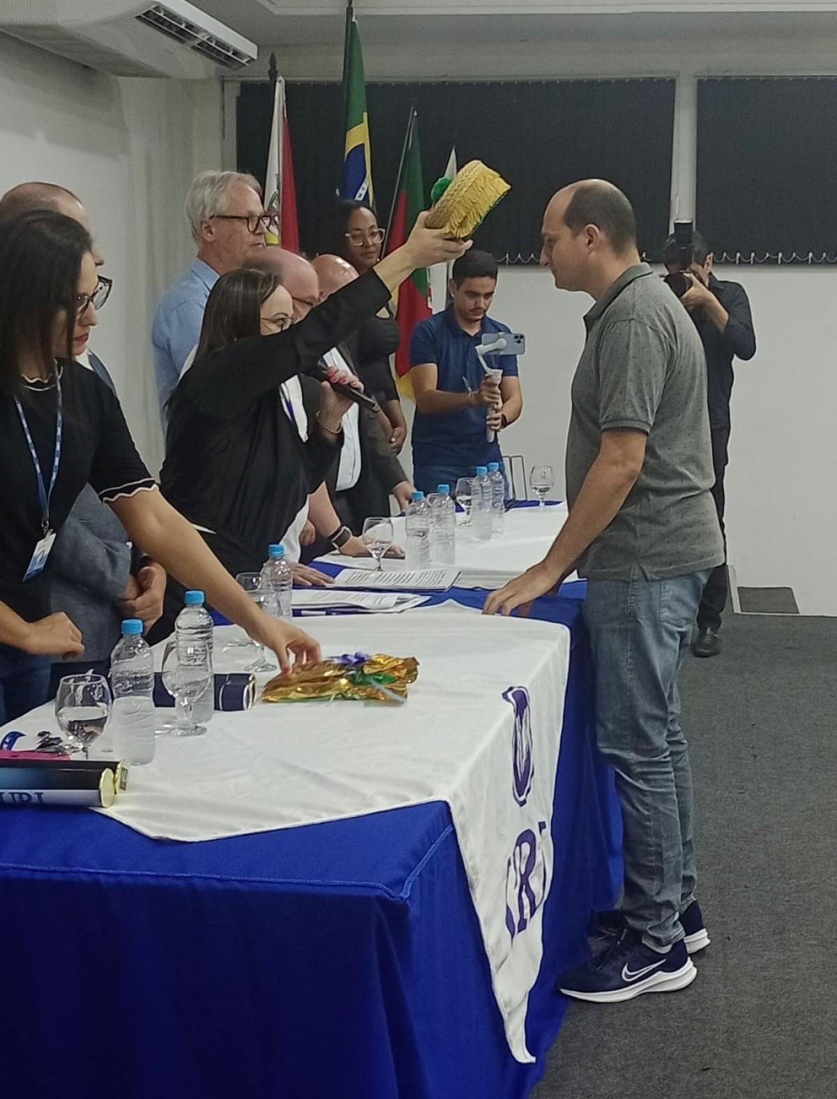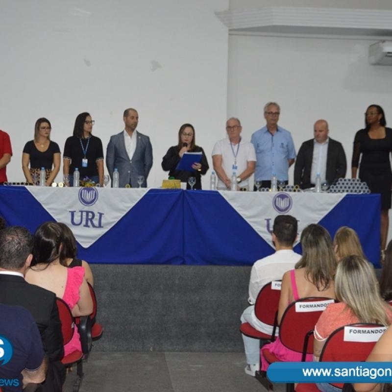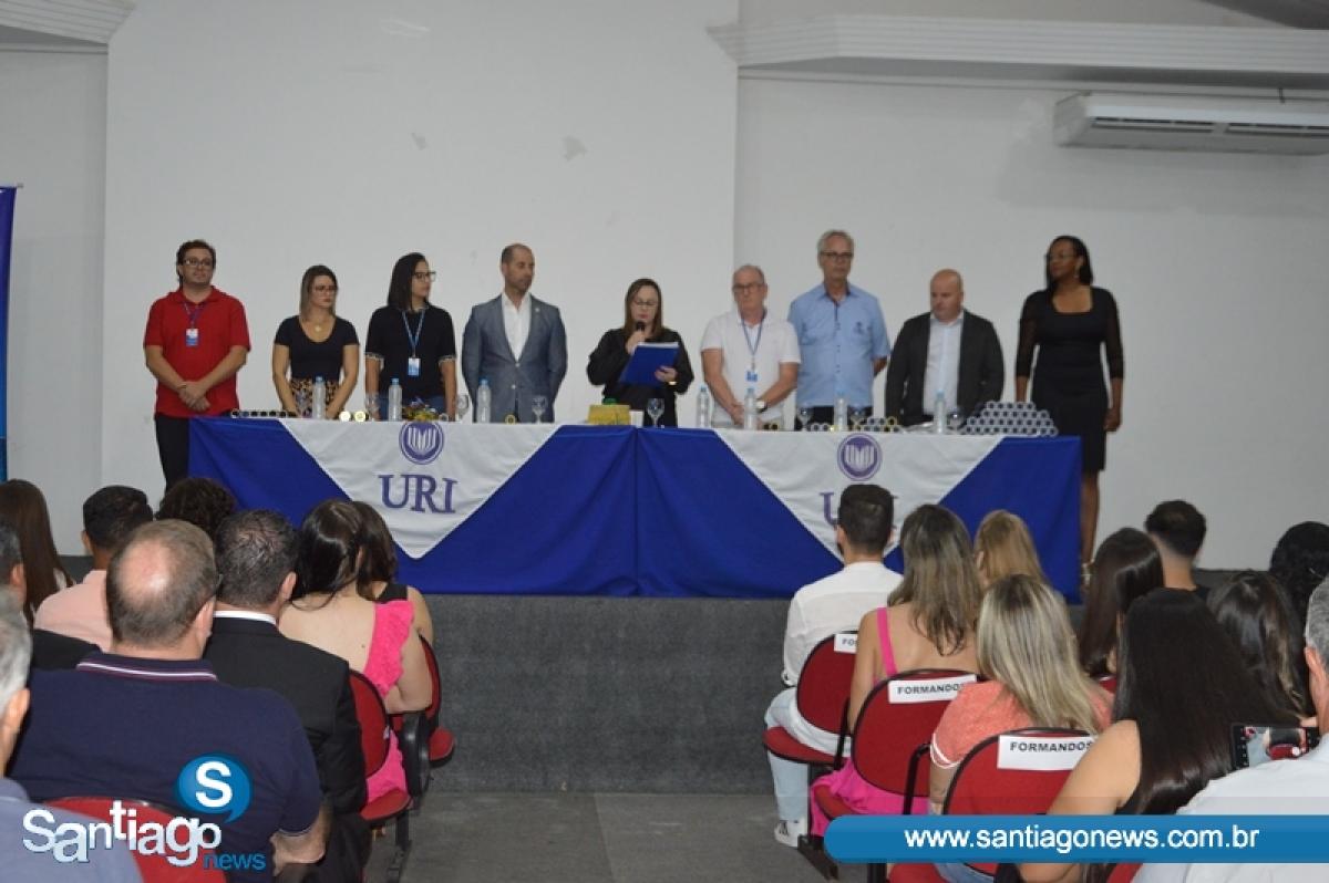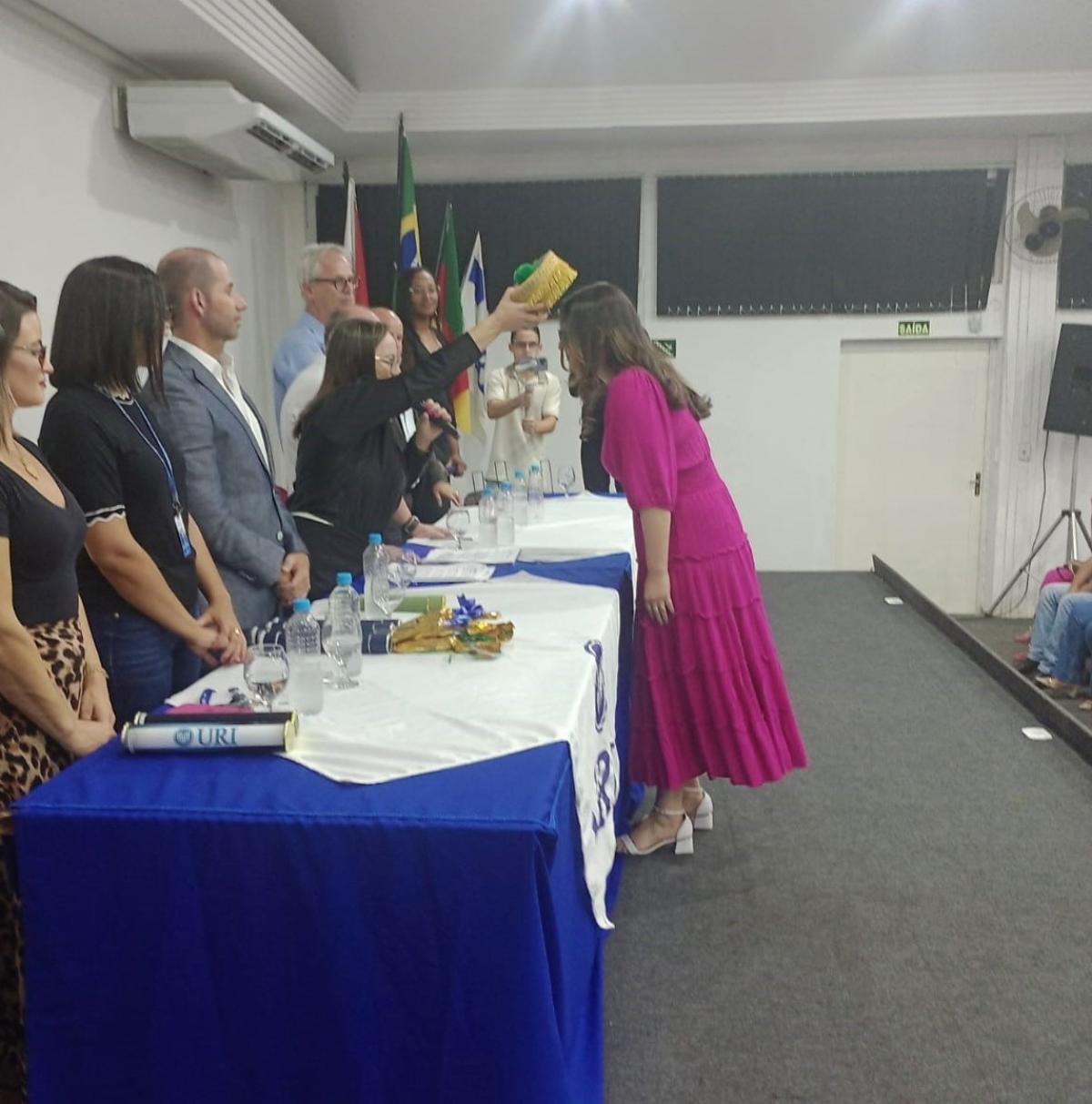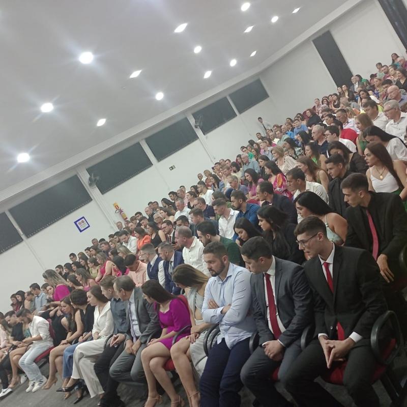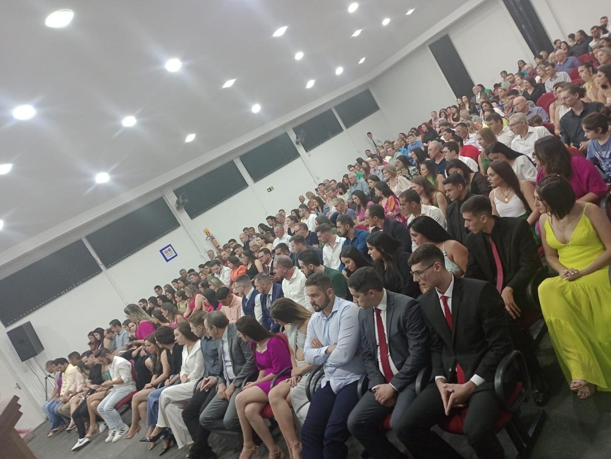 Na última sexta-feira (17), o Salão de Atos da Universidade ficou lotado devido à colação de grau de gabinete, reunindo formandos de diversos cursos: Administração, Agronomia, Arquitetura e Urbanismo, Direito, Educação Física, Enfermagem, Farmácia e Psicologia. A cerimônia foi presidida pela Diretora Acadêmica, professora Claudete Moreschi. Junto da dirigente, estavam os coordenadores dos referidos cursos na mesa de honra.