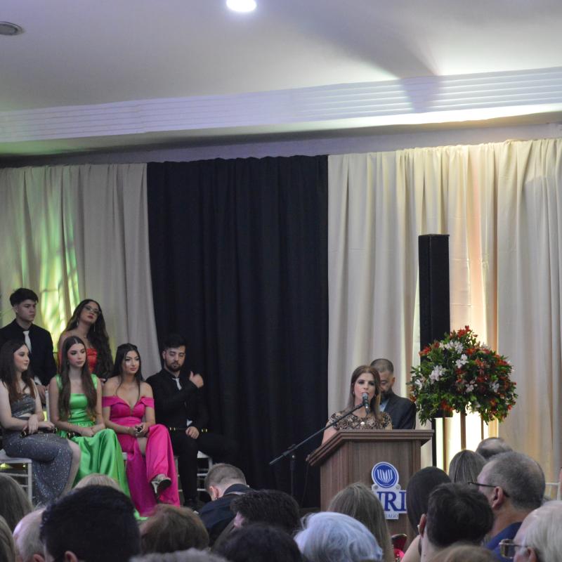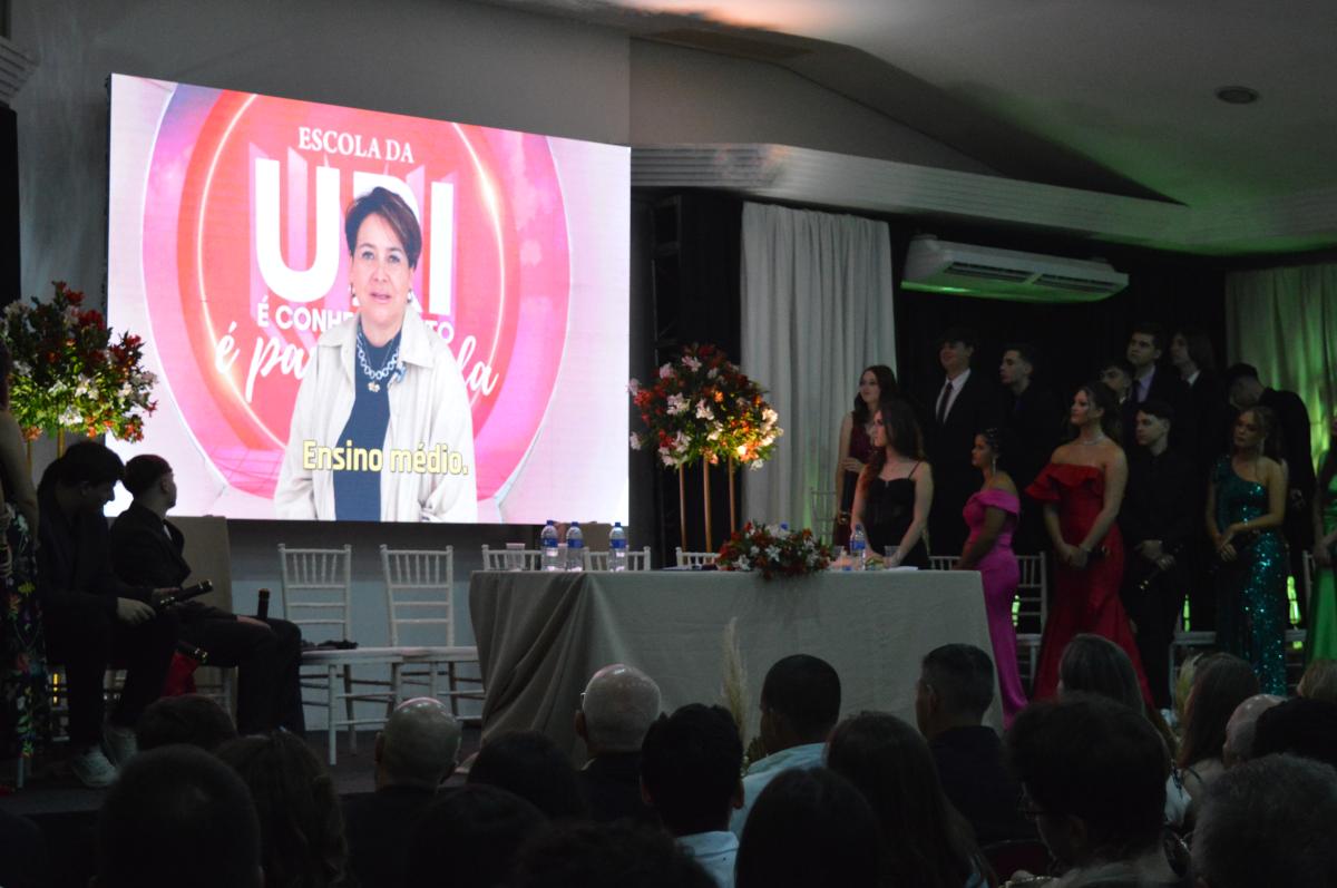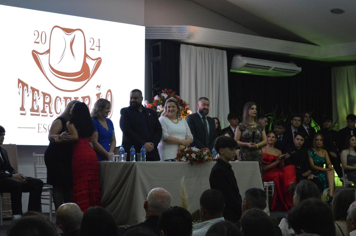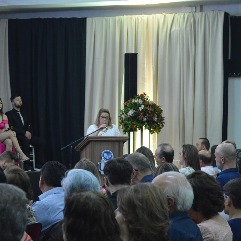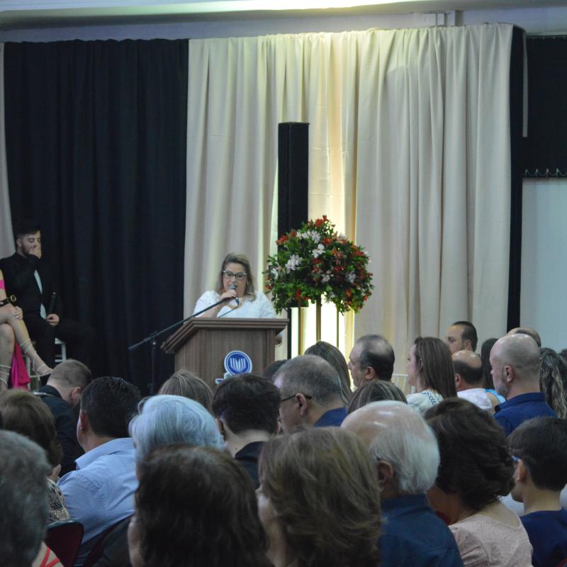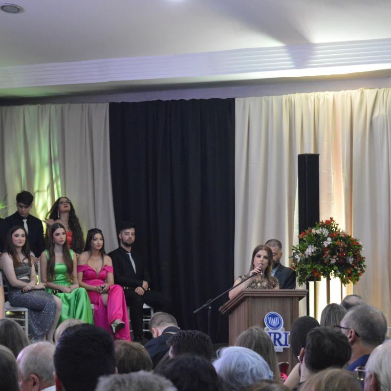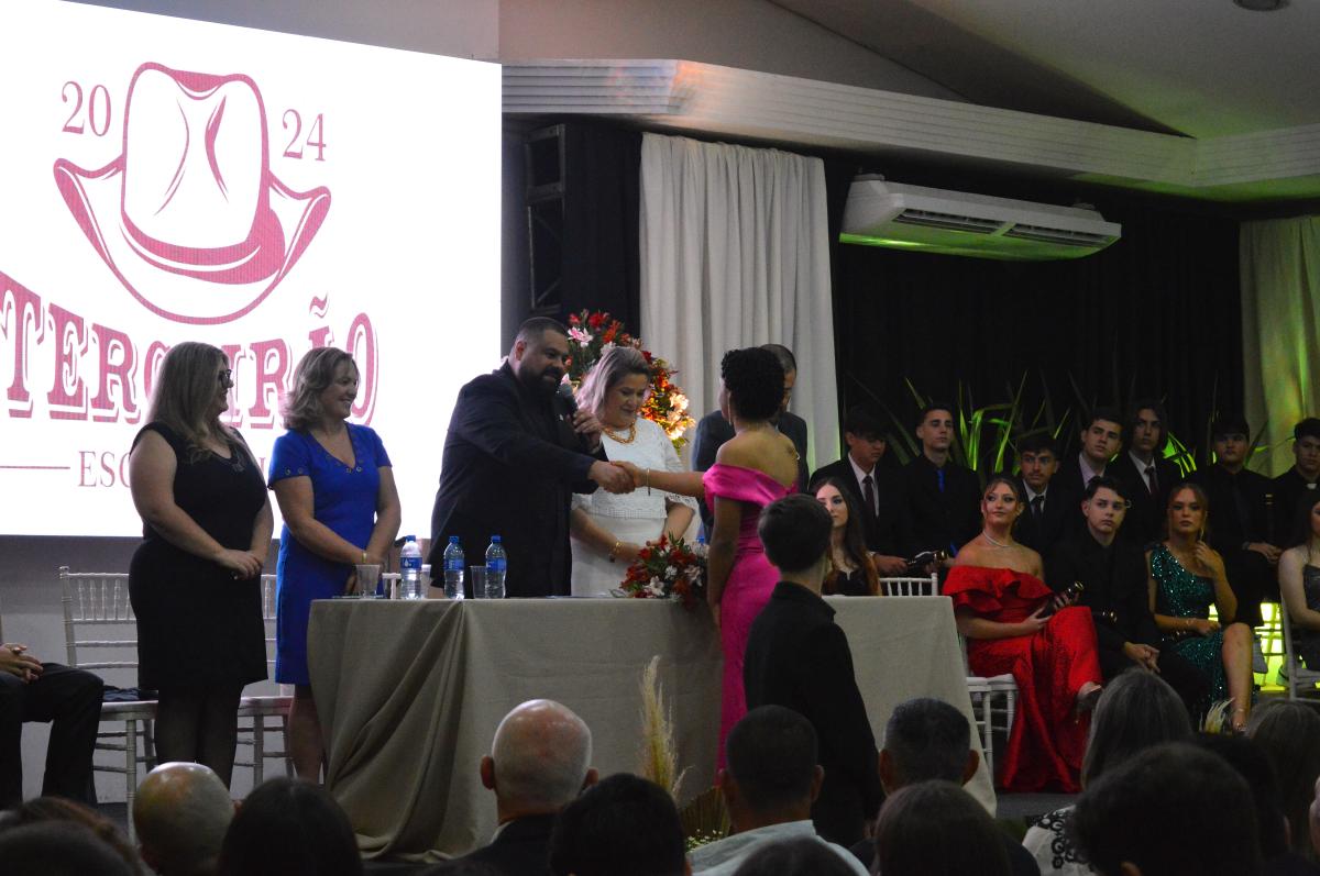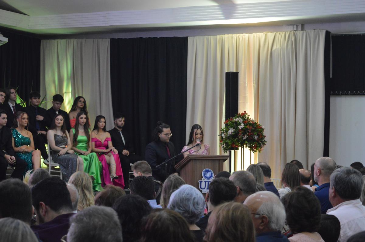 A Diretora da Escola de Educação Básica, Professora Roselaine Lenhard Lamberti, também fez um pronunciamento de agradecimento e reconhecimento aos formandos e à equipe pedagógica, ressaltando que o Ensino Médio é apenas o começo de uma caminhada cheia de oportunidades e desafios.