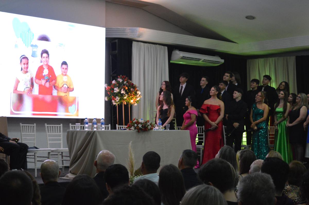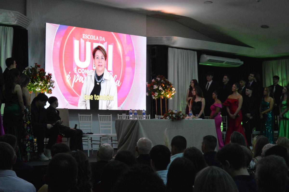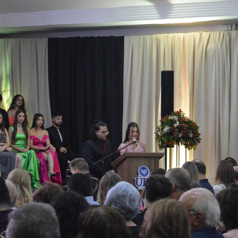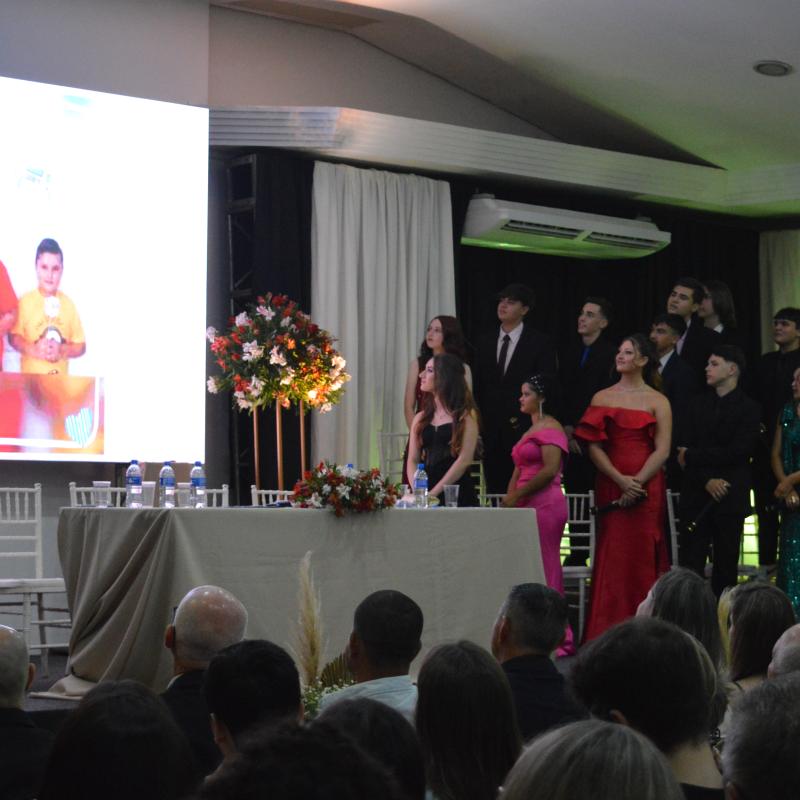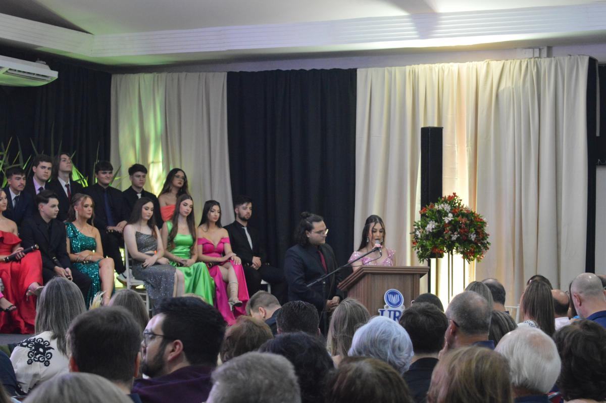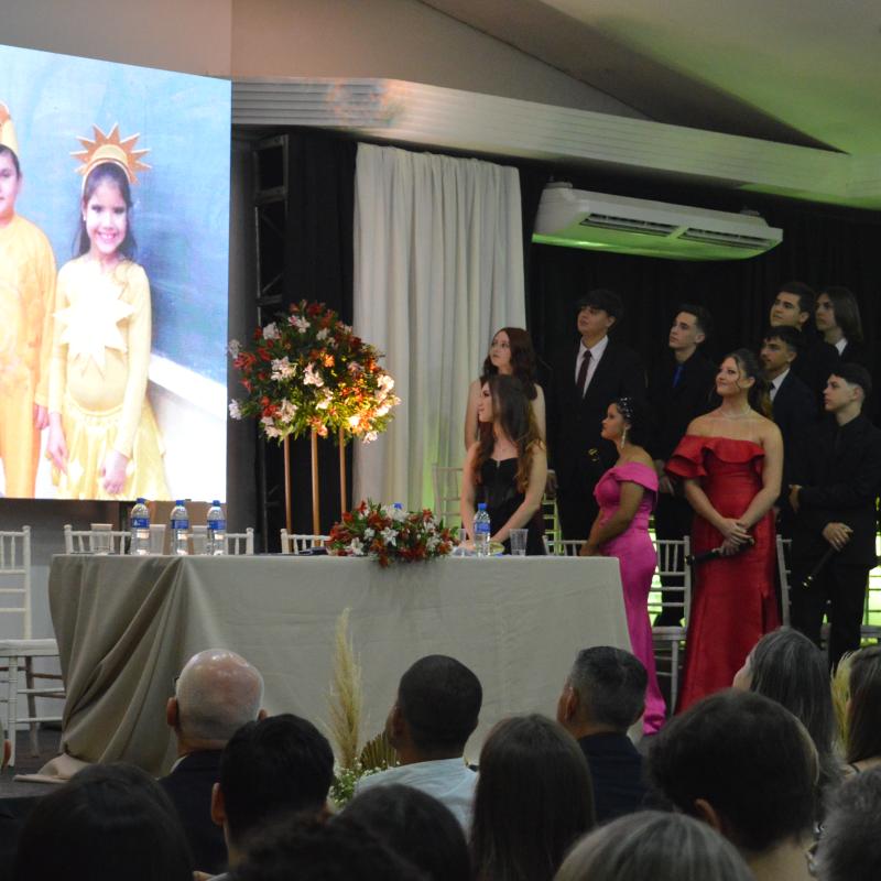 Um dos momentos mais emocionantes foi a exibição de um vídeo de retrospectiva, produzido pelos próprios alunos, que relembraram os momentos mais marcantes dessa caminhada educacional e pessoal. O aluno Frederico Lehnhard Lamberti também fez uma homenagem especial aos paraninfos e aos docentes que foram homenageados pela turma.