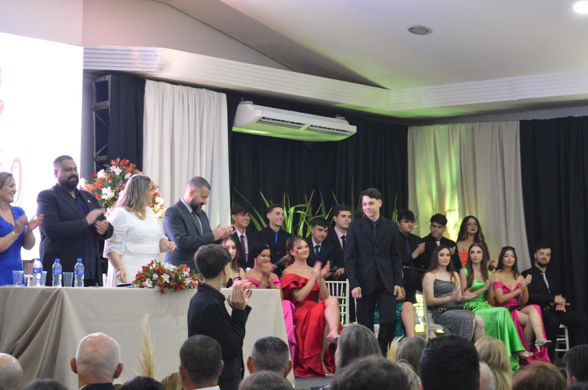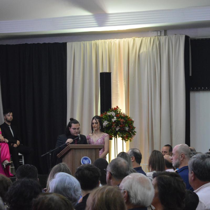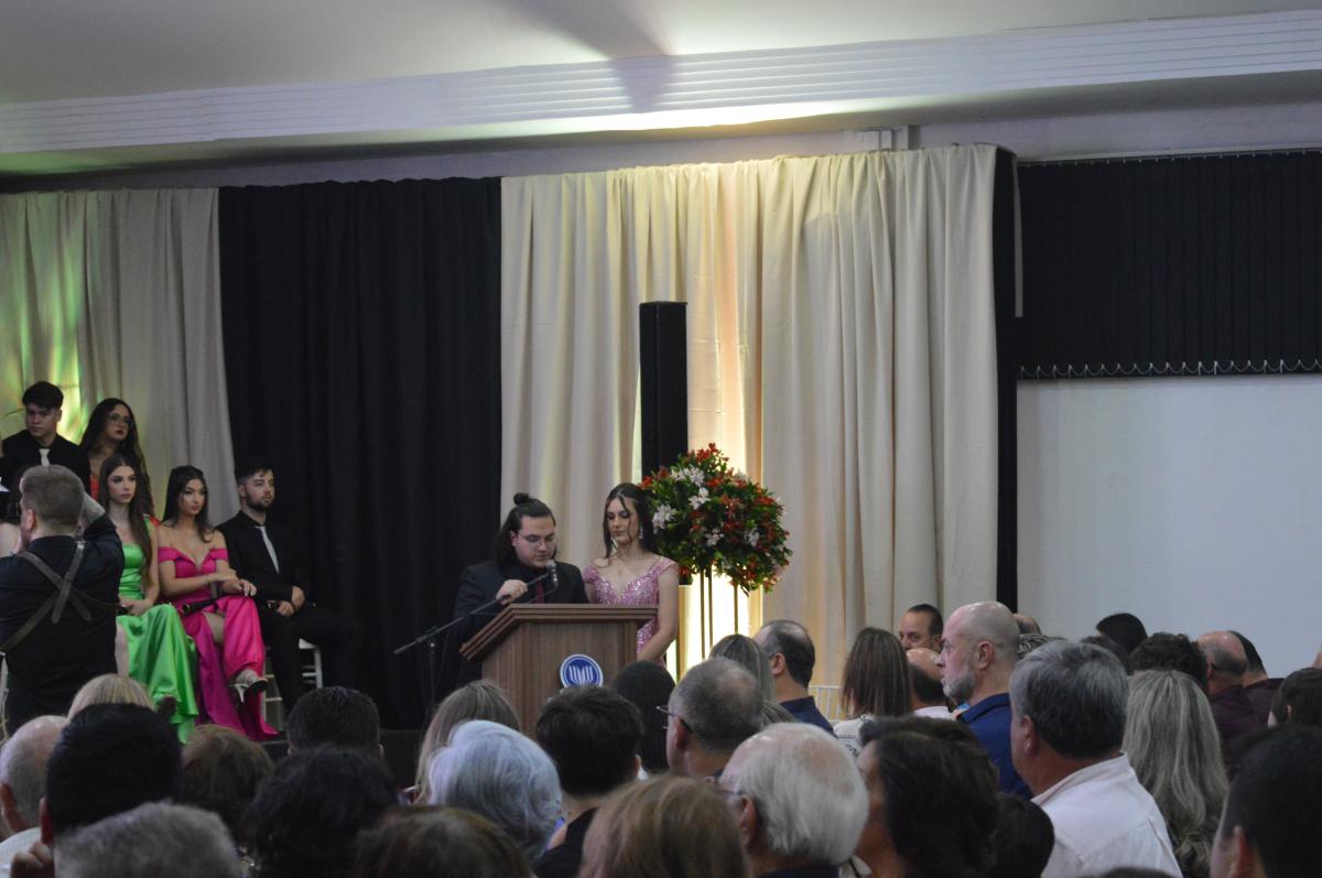 Os formandos também tiveram a oportunidade de expressar seus sentimentos e agradecer àqueles que foram fundamentais em sua trajetória. Bernardo Rosso da Silva e Luana Gavioli de Souza, oradores da Turma, emocionaram o público ao compartilhar as experiências vividas e os desafios superados ao longo dos três anos de Ensino Médio.