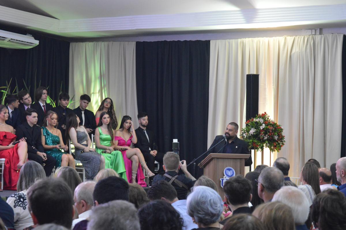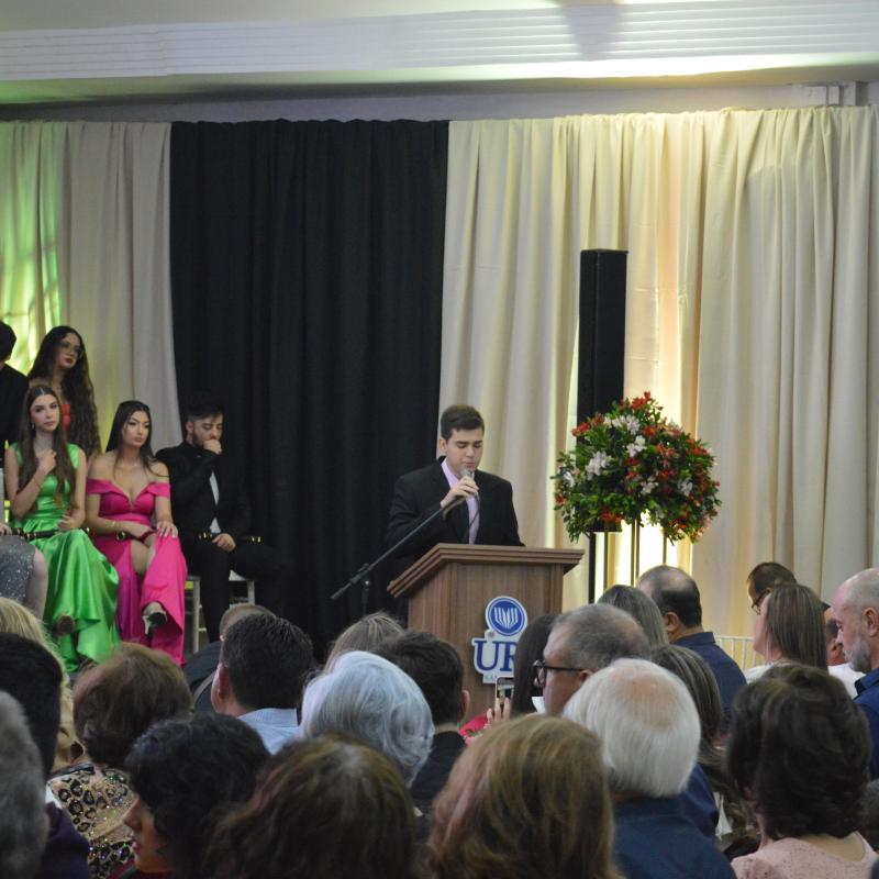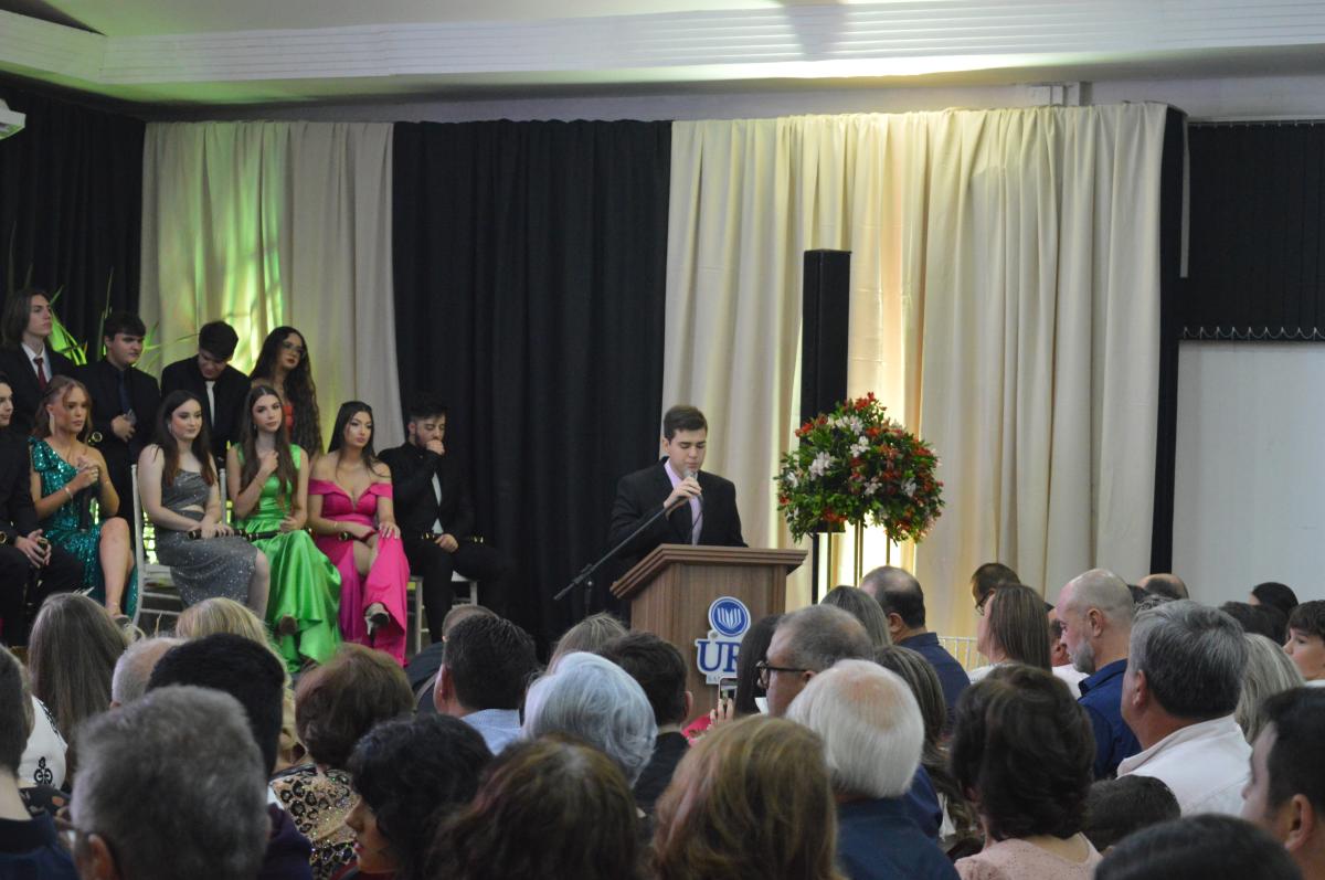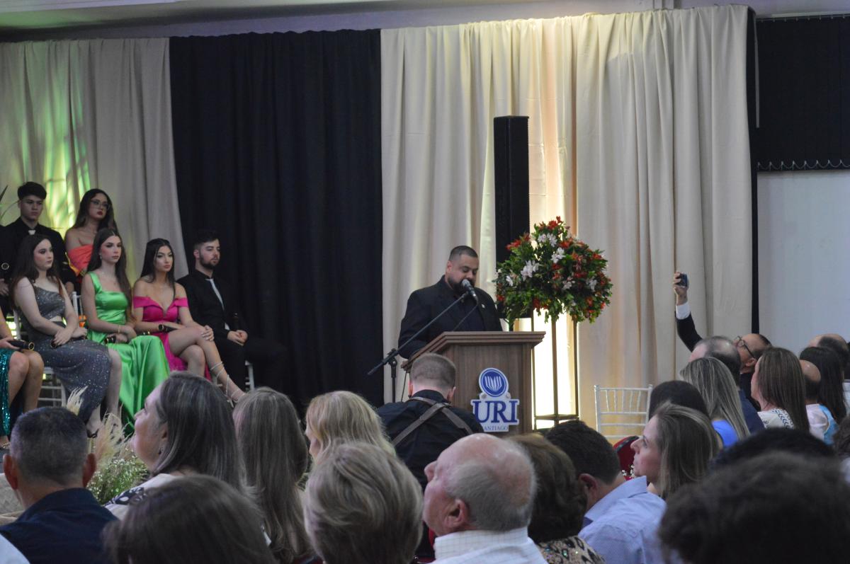 O Diretor Geral da URI Santiago, Professor Júlio César Wincher Soares, foi o responsável por encerrar a cerimônia com um discurso que destacou a importância da educação como base para o futuro dos formandos. Ele parabenizou os alunos pela dedicação e esforço ao longo de sua trajetória e os incentivou a continuar buscando o conhecimento em suas novas jornadas.