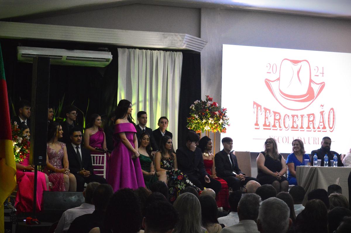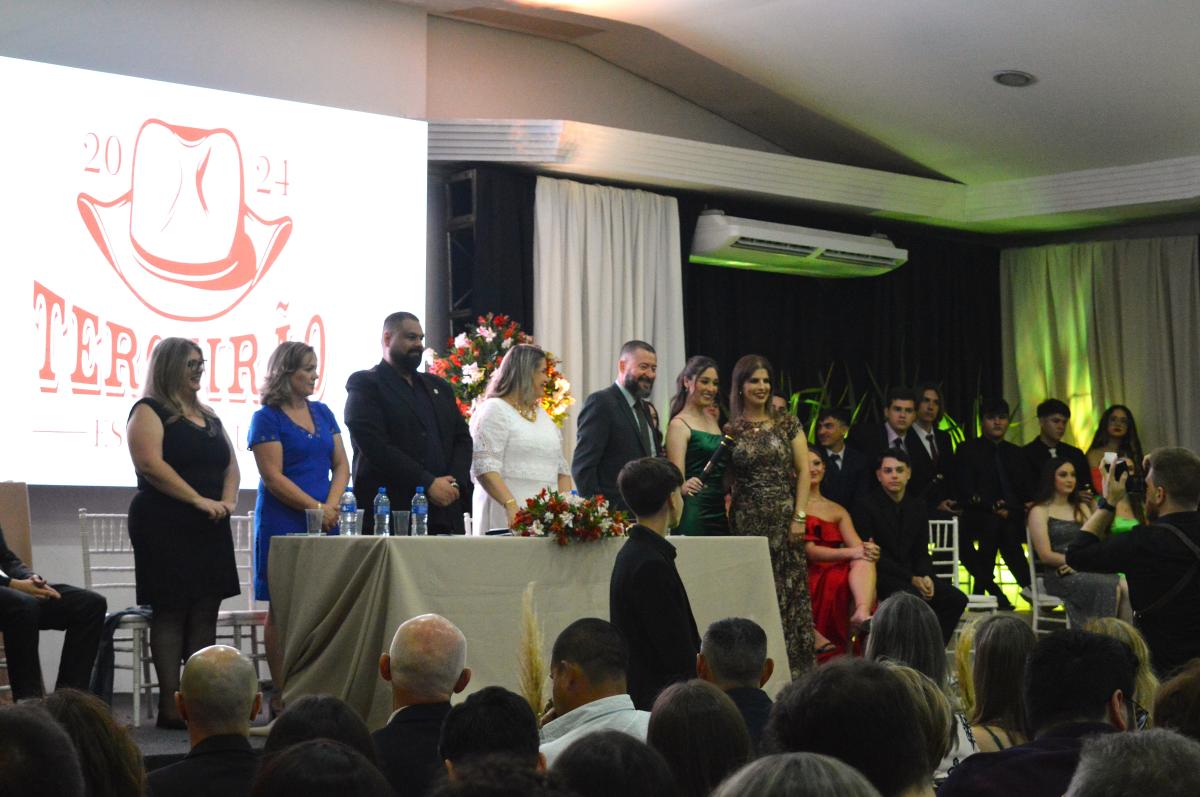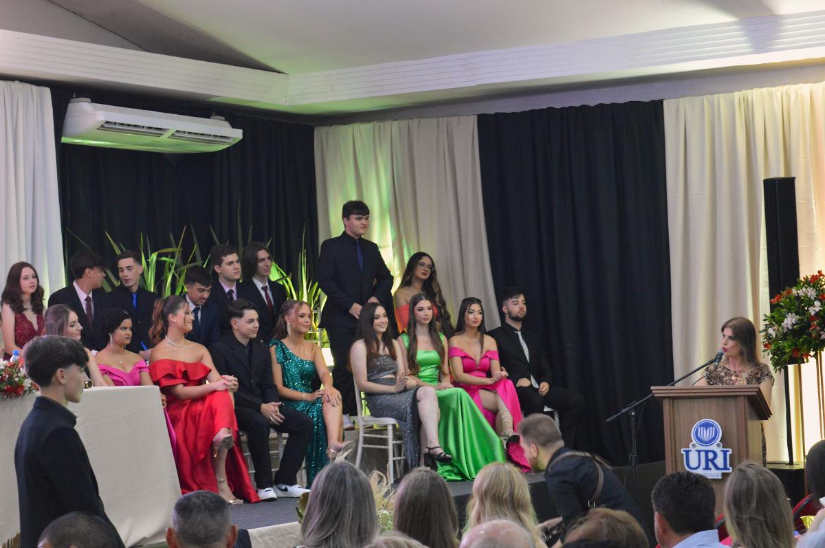 A mesa de autoridades foi composta por ilustres representantes da Instituição. O evento foi presidido pelo Diretor Geral da URI Santiago, Professor Júlio César Wincher Soares, acompanhado da Diretora da Escola de Educação Básica, Professora Roselaine Lenhard Lamberti, da Vice-Diretora, Professora Luciane de Fátima Manzoni da Costa, e da Coordenadora Pedagógica do Ensino Médio, Professora Ana Clara Rebelo Flores. A cerimônia contou também com a presença dos paraninfos da turma, Professores Ana Paula Nunes Milani e Joel Brazeiro Fernandes, além dos demais Professores e funcionários homenageados, como Jéssica Cantele de Freitas, Karla Bonotto Behr e Rejane Biasi.