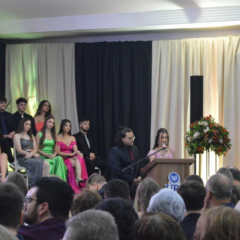 No último sábado (7) a Escola de Educação Básica da Universidade Regional Integrada do Alto Uruguai e das Missões (URI), Câmpus Santiago celebrou uma data marcante: a formatura da Turma de 2024 do Ensino Médio. A cerimônia, realizada no Salão de Atos do Câmpus, foi um momento de emoção e alegria para os formandos, familiares, amigos e toda a comunidade que acompanhou a trajetória desses jovens ao longo de sua jornada escolar.