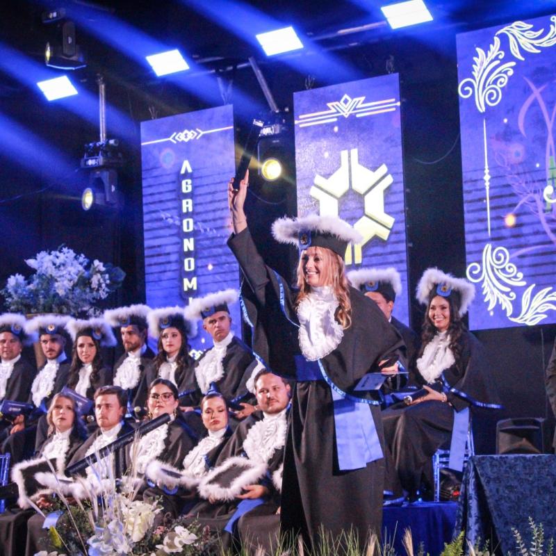 No último sábado, 24 de janeiro, a Universidade Regional Integrada do Alto Uruguai e das Missões (URI) Câmpus de Santiago realizou a Sessão Solene de Colação de Grau do Curso de Agronomia, oficializando a conclusão da graduação de 24 novos(as) Engenheiros(as) Agrônomos(as). A cerimônia ocorreu no Grêmio de Subtenentes e Sargentos da Guarnição de Santiago, com início às 19h, reunindo formandos, familiares, amigos, professores e autoridades acadêmicas, civis e militares.