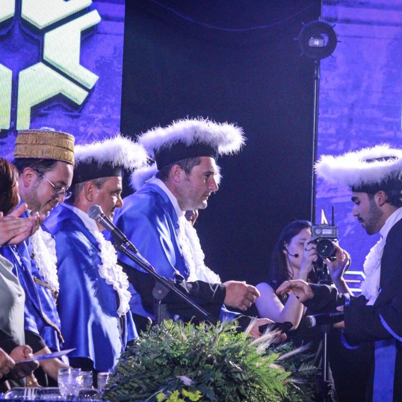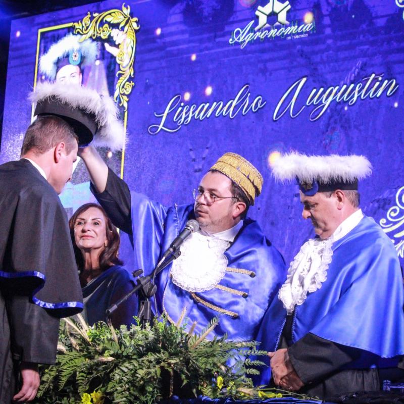 A solenidade foi presidida pelo Diretor Acadêmico da URI Santiago, Professor Izaque Machado Ribeiro, conforme determina o Regimento Geral da Instituição. Compuseram a mesa de honra as autoridades acadêmicas: o Professor Olmiro Bochi Brum, coordenador do Curso de Agronomia; a Professora Tassiane Bolzan Morais, patronesse da turma; e o Professor Danie Martini Sanchotene, paraninfo da turma.