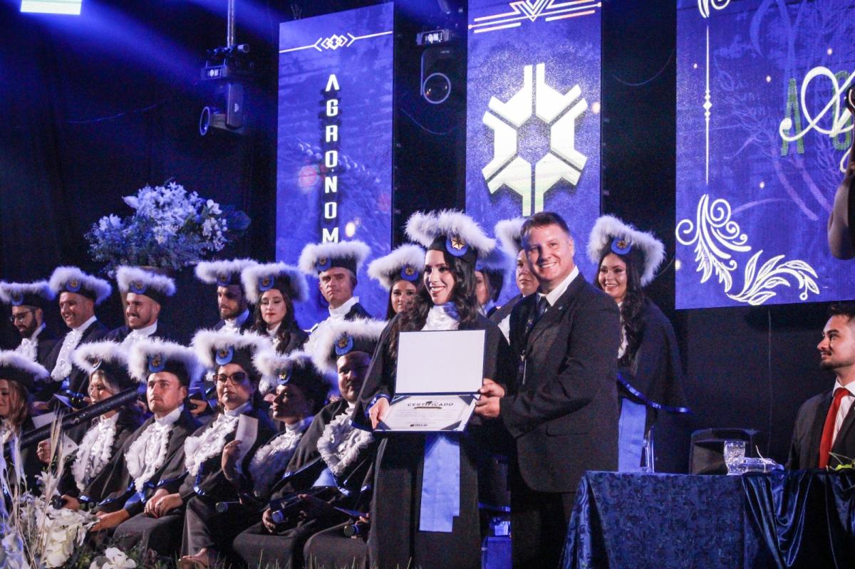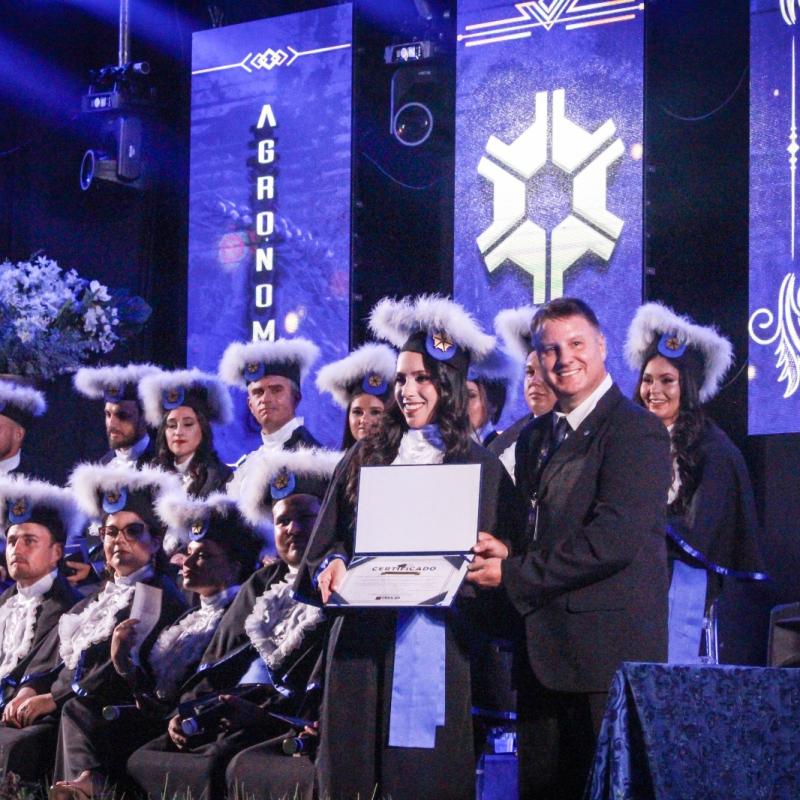 O juramento do Curso de Agronomia foi realizado pelo formando João Lucas Resta Pereira, reafirmando o compromisso ético, técnico e social da profissão.