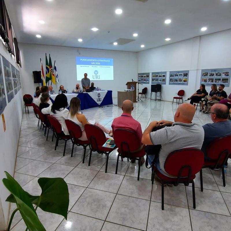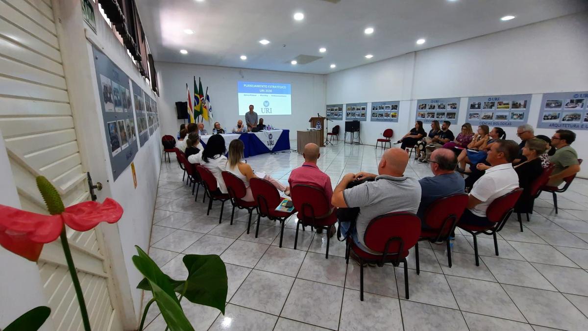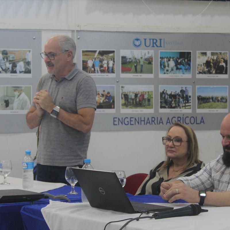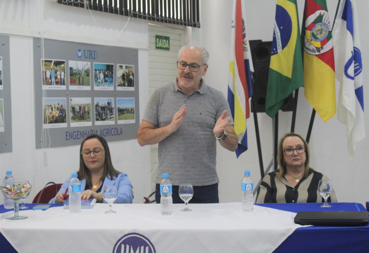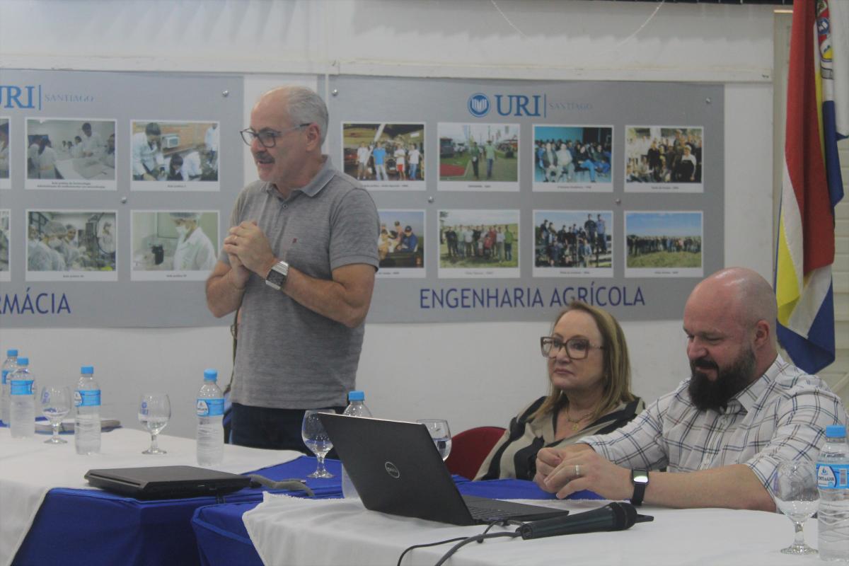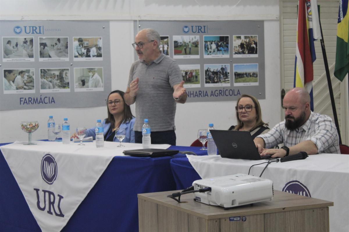 O Diretor Geral da Universidade Regional Integrada do Alto Uruguai e das Missões- URI Santiago, professor Júlio Cesar Wincher Soares, abriu o momento, passando a palavra ao Reitor, professor Arnaldo Nogaro. Conforme ele, trata-se de uma proposição de trabalho, com tarefas a serem desenvolvidas em cada Câmpus, no sentido de compor uma peça maior, chamada de planejamento estratégico, pensando a Universidade até 2030.