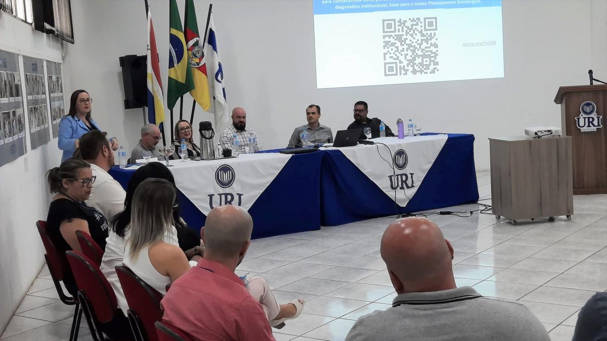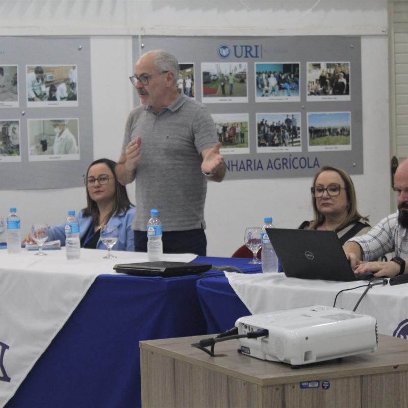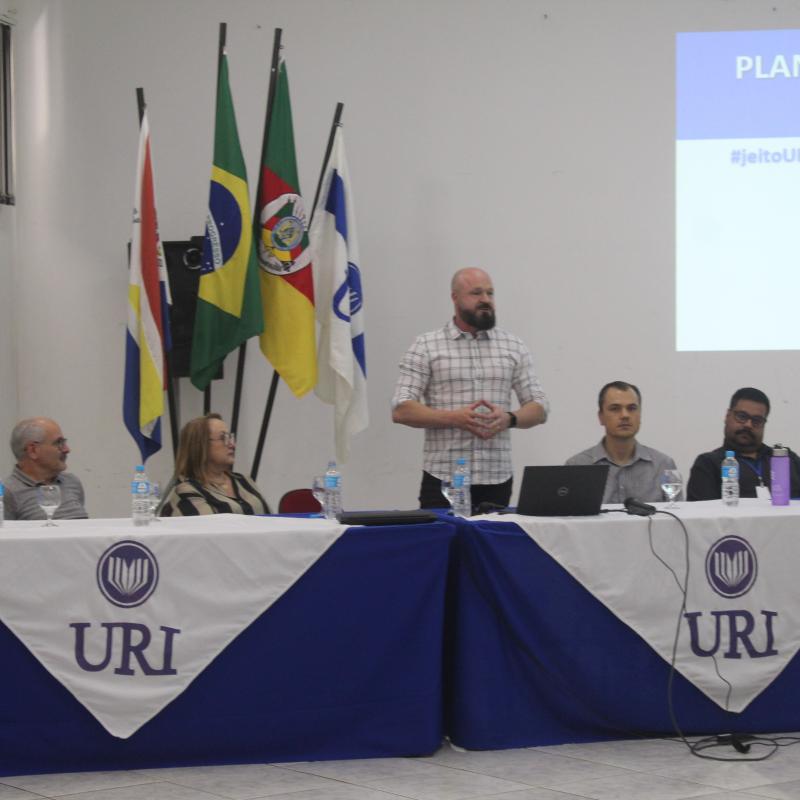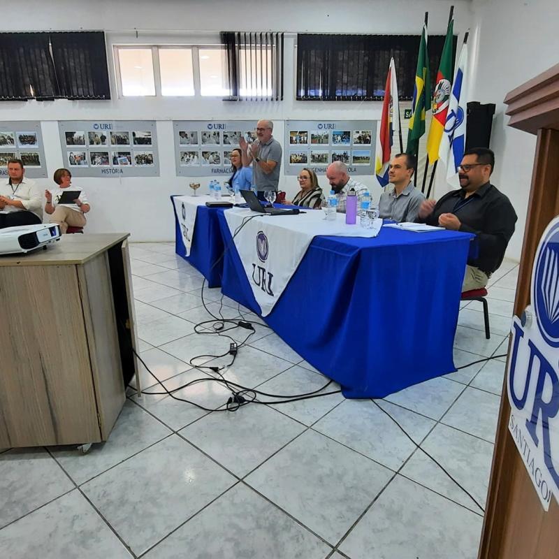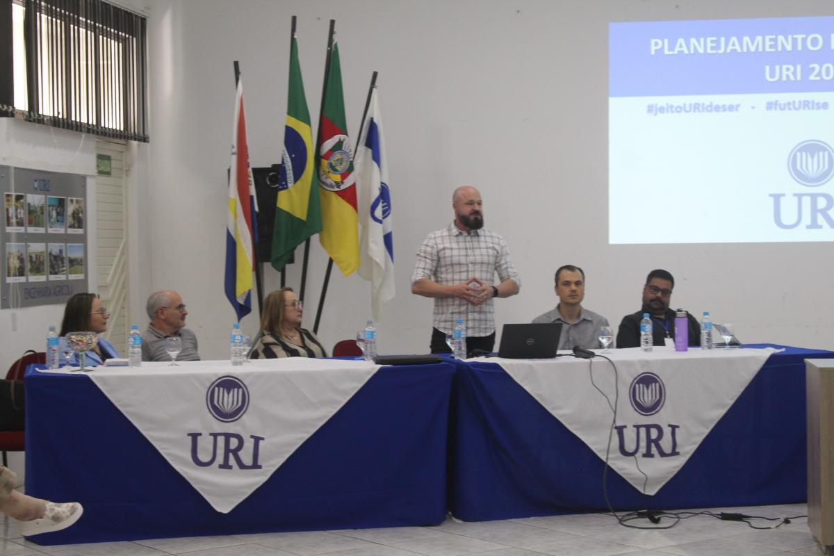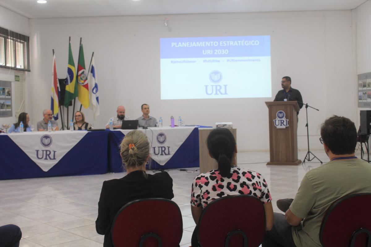 O Diretor Geral da Universidade Regional Integrada do Alto Uruguai e das Missões- URI Santiago, professor Júlio Cesar Wincher Soares, abriu o momento, passando a palavra ao Reitor, professor Arnaldo Nogaro. Conforme ele, trata-se de uma proposição de trabalho, com tarefas a serem desenvolvidas em cada Câmpus, no sentido de compor uma peça maior, chamada de planejamento estratégico, pensando a Universidade até 2030.