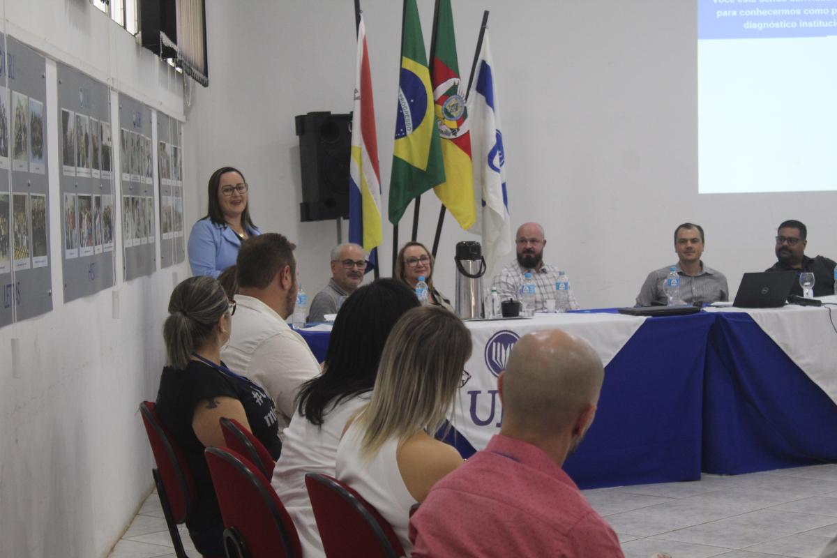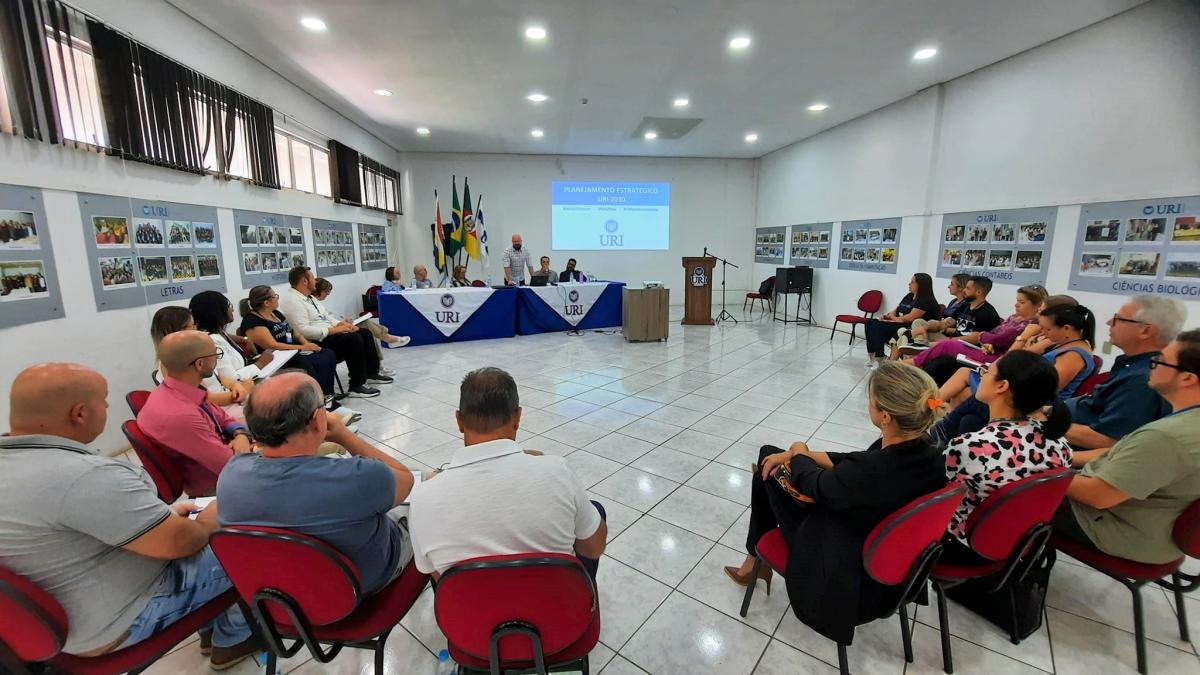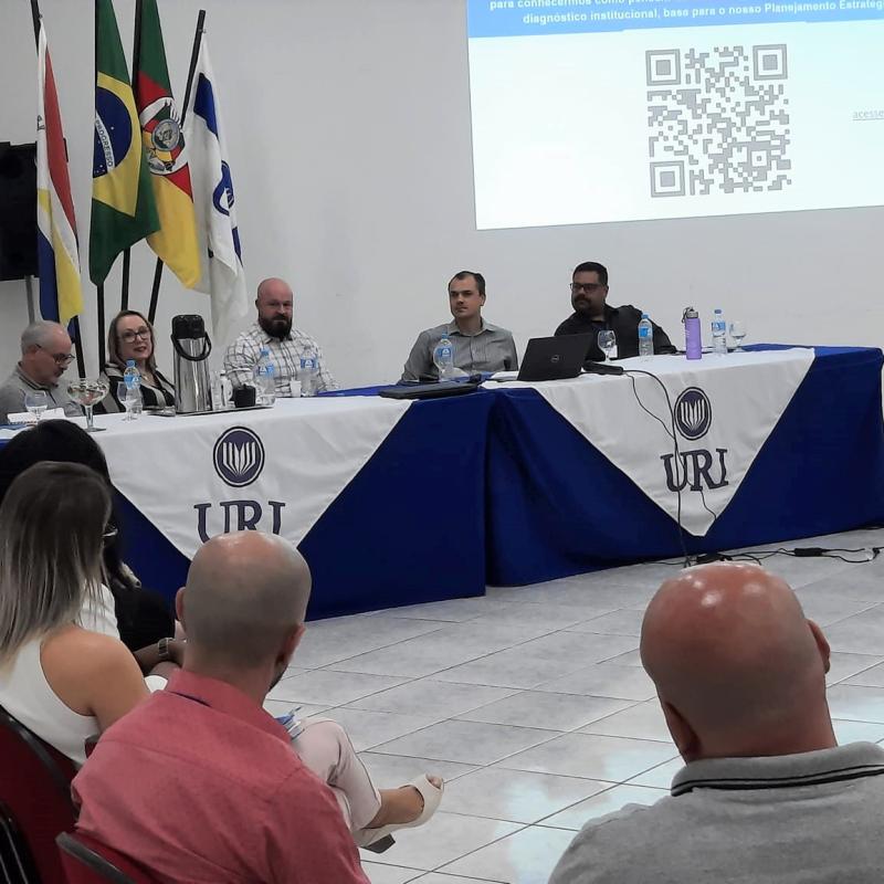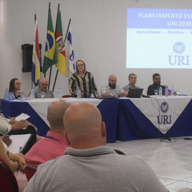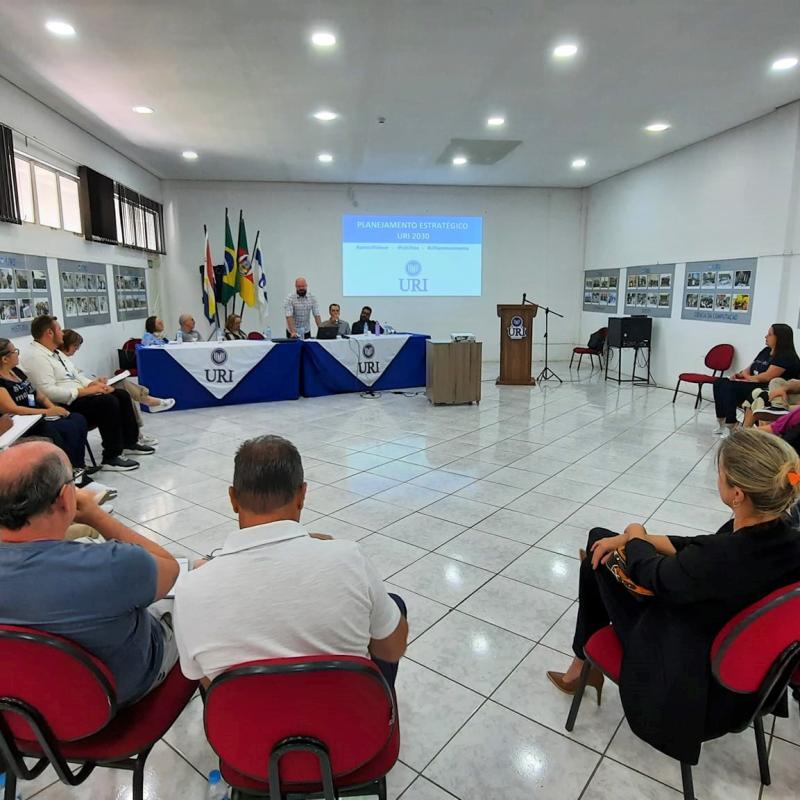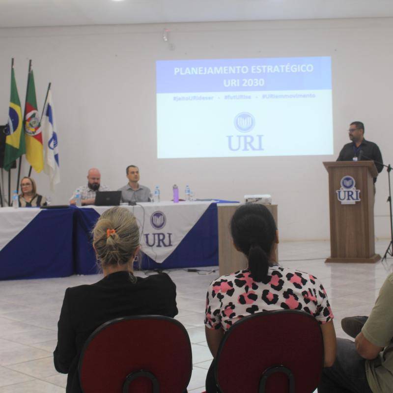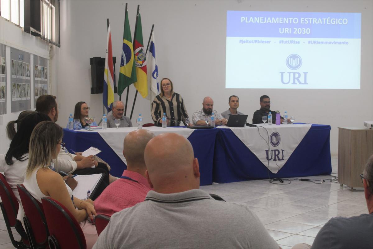 O Diretor Geral da Universidade Regional Integrada do Alto Uruguai e das Missões- URI Santiago, professor Júlio Cesar Wincher Soares, abriu o momento, passando a palavra ao Reitor, professor Arnaldo Nogaro. Conforme ele, trata-se de uma proposição de trabalho, com tarefas a serem desenvolvidas em cada Câmpus, no sentido de compor uma peça maior, chamada de planejamento estratégico, pensando a Universidade até 2030.