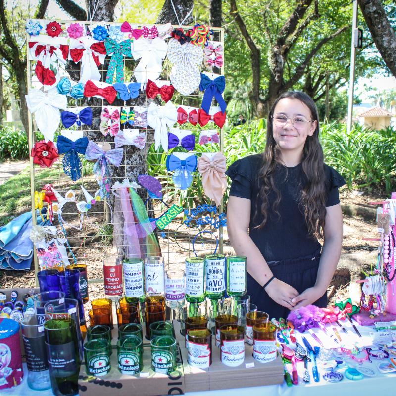 Nesta edição, 36 expositores participaram da Feira, entre adolescentes e familiares, apresentando uma grande variedade de produtos doces, salgados, velas e sabonetes artesanais, cucas, bolos, cones trufados, alfajores, peças de artesanato, quadros pintados a óleo e pesinhos de porta, entre outros. Além das exposições, o público pôde acompanhar a apresentação do grupo Dona Lenir e os Guris e participar do Canto Livre na Praça, um espaço aberto para quem quisesse cantar ou tocar.