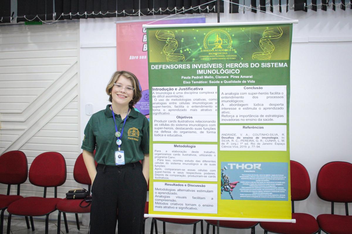A atividade, organizada pelo Curso em parceria com uma comissão de alunos, buscou aproximar os participantes das múltiplas possibilidades profissionais da Biomedicina. Para a acadêmica Júlia Garcia Gireli, do 4º semestre e integrante da comissão organizadora, o evento cumpriu seu propósito com excelência.