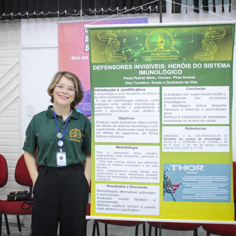 - A nossa Semana Acadêmica foi planejada com o propósito de apresentar aos alunos diferentes áreas de atuação do biomédico, muitas delas pouco conhecidas por nós, acadêmicos, inclusive por mim. Cada profissional convidado trouxe conteúdos atuais, relevantes e que despertaram o interesse de todos -, relata Júlia.