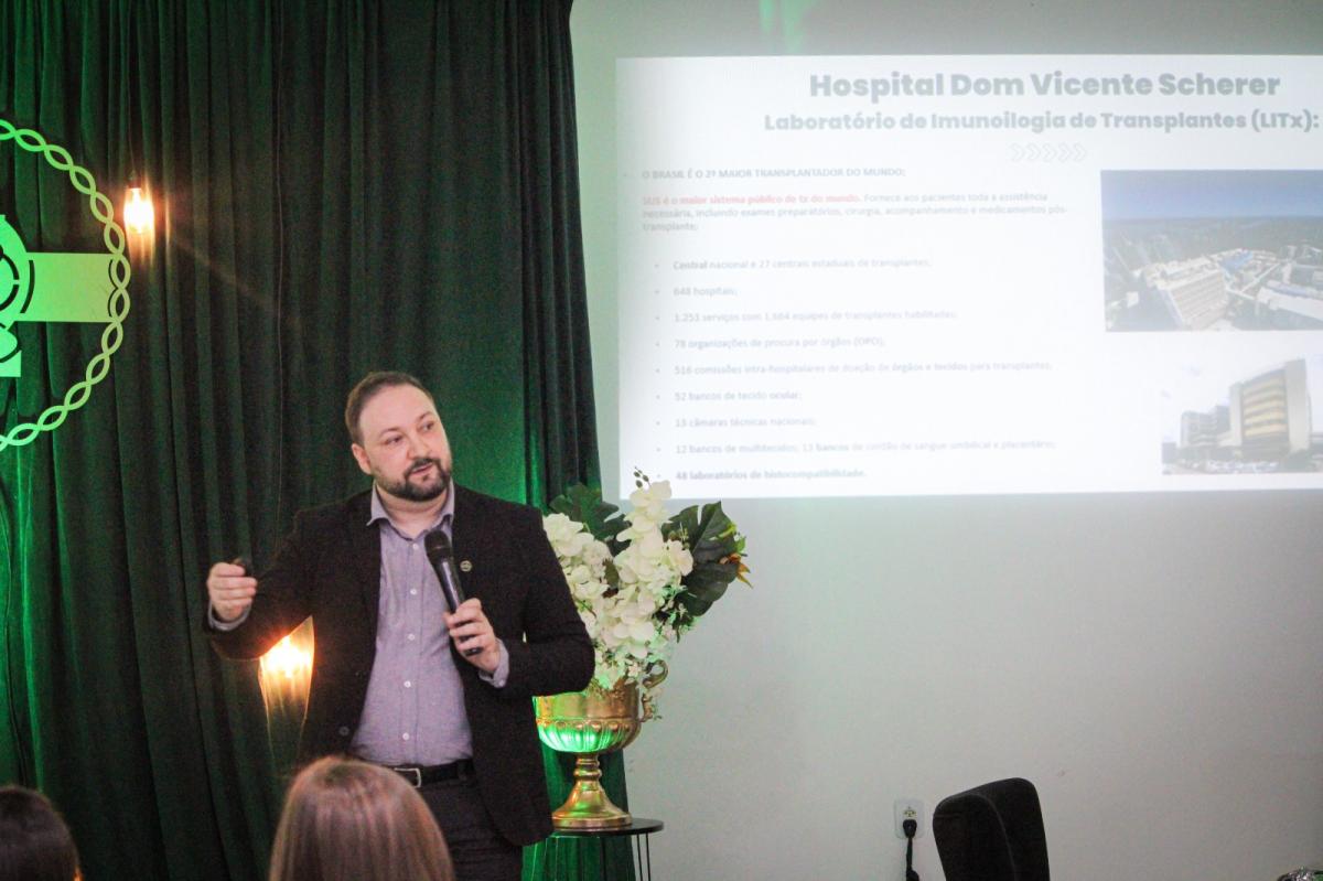 A programação incluiu ainda participação do cirurgião-dentista Dr. Aroldo Alves Junior, especialista em Harmonização Orofacial e palestrante internacional; do professor Dr. Renato Minozo, presidente do CRBM 5ª Região e profissional com trajetória consolidada em genética e toxicologia; e do biomédico Thiago Schiavo, especialista em imunologia de transplantes, com experiência internacional em imunogenética.