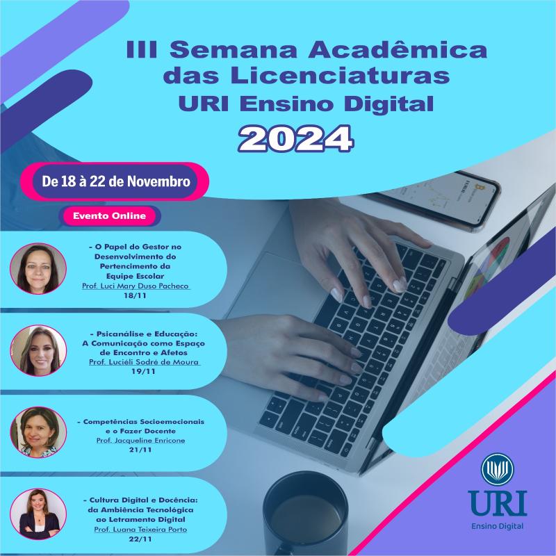 A III Semana Acadêmica das Licenciaturas da URI Ensino Digital é uma excelente oportunidade para refletir sobre o papel do educador no cenário atual e para promover a troca de saberes entre a comunidade acadêmica.