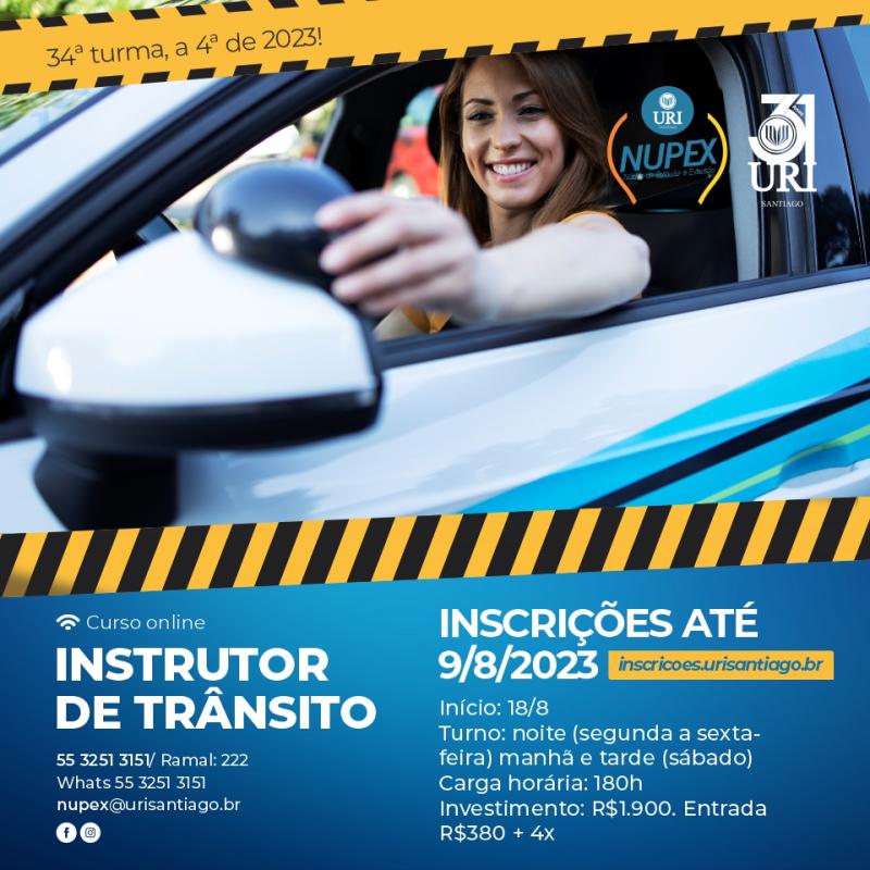 A Universidade Regional Integrada do Alto Uruguai e das Missões – URI Santiago entrará para a sua 34ª turma do curso de Instrutor de Trânsito, a quarta turma só neste ano de 2023.