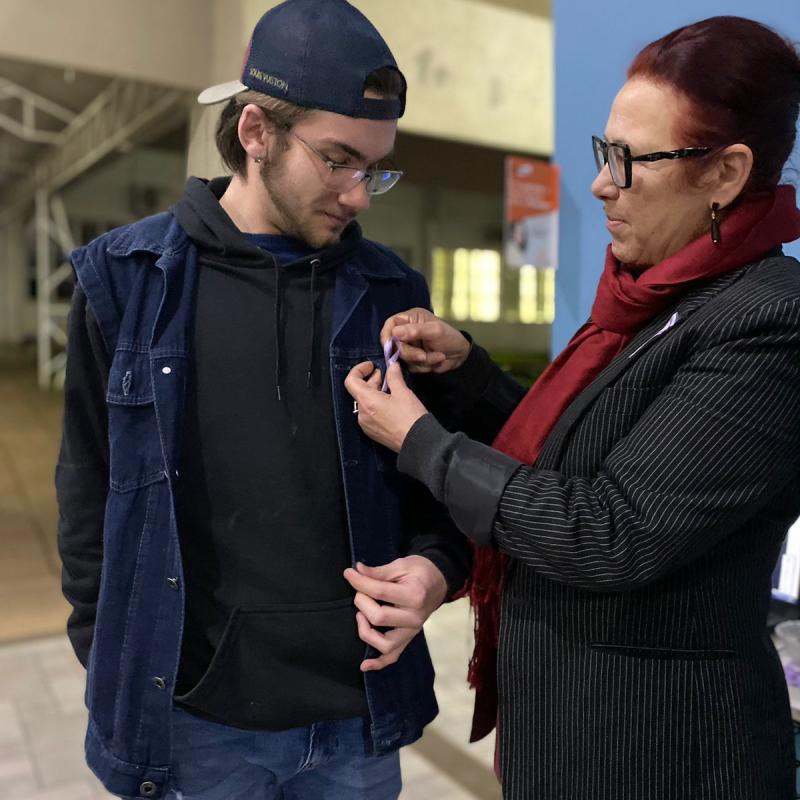 09/08: Entrega de fita lilás. Campanha de conscientização sobre a importância da prevenção e enfrentamento à violência contra a mulher.