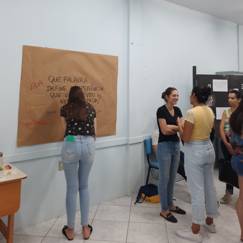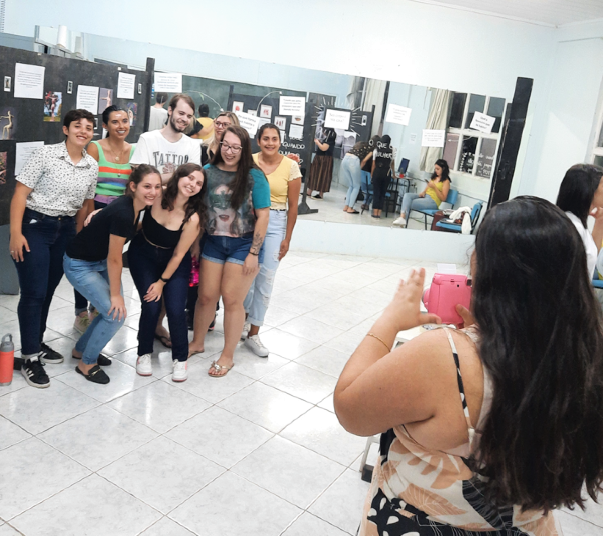 Conforme a professora Camilla Biazus, é um espaço para movimentar sentidos e sentires. O mesmo foi organizado pela docente e pelas acadêmicas Pâmela Lago e Daniele Almeida.