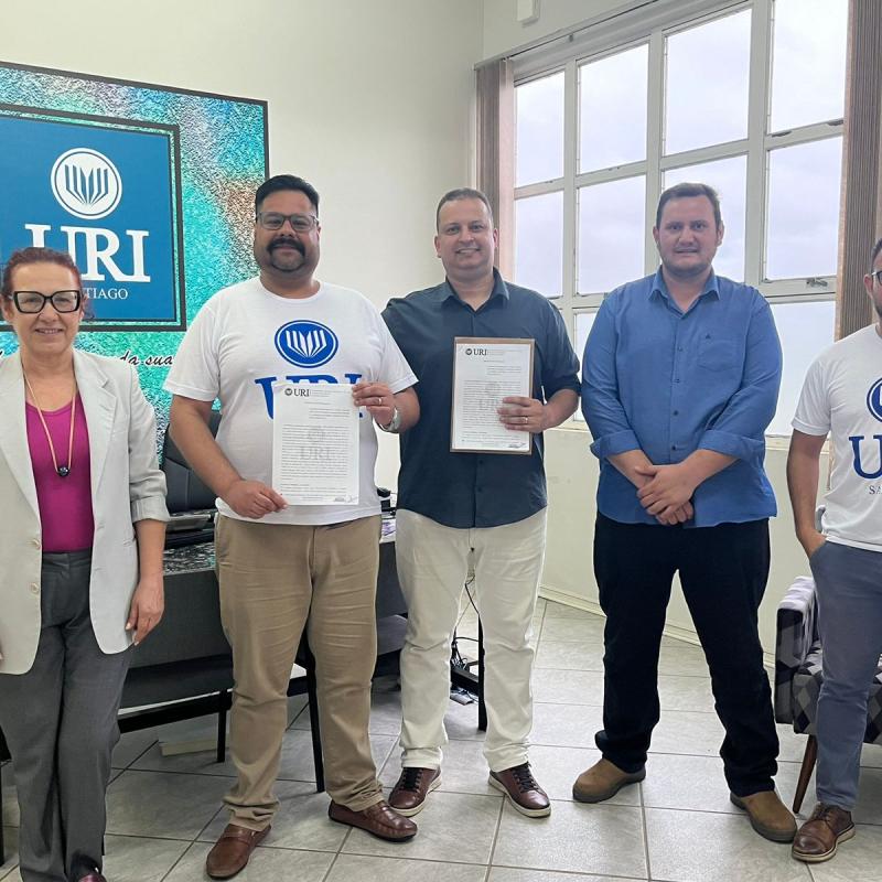 Na ocasião estavam presentes o Diretor Geral da URI Câmpus Santiago, Professor Julio Cesar Wincher Soares; o Gestor do Polo de Modernização Tecnológica do Vale do Jaguari (PMTVJ), Profº Higor Machado; a Coordenadora do PMTVJ, Profª Rosangela Montagner; o Coordenador da Incubadora Crescer, Profº Heitor Leal; e o representante da 834 Studios e Serviços Digitais, Roger Duarte.