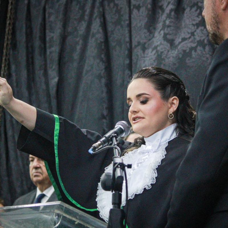 O juramento do Curso de Psicologia foi realizado pela formanda Ana Gabriela Dapieve Fortes, reafirmando o compromisso ético, científico e social da profissão.