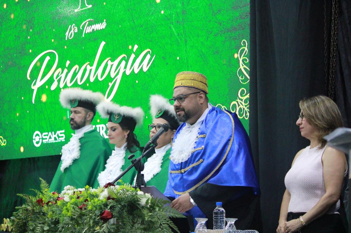 Ao final da solenidade, o Diretor Geral da URI Santiago, Prof. Júlio César Wincher Soares, realizou seu pronunciamento, dirigindo palavras de reconhecimento e incentivo aos novos bacharéis em Psicologia. Em sua fala, destacou a relevância social da profissão, ressaltando que os formandos passam a integrar uma área fundamental para a promoção da saúde mental, do cuidado com as pessoas e do fortalecimento das relações humanas em diferentes contextos da sociedade.