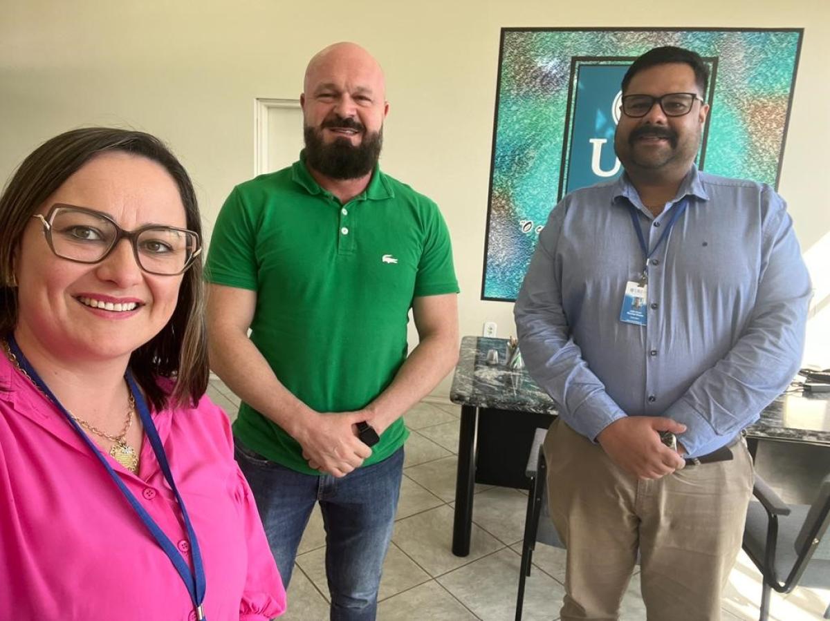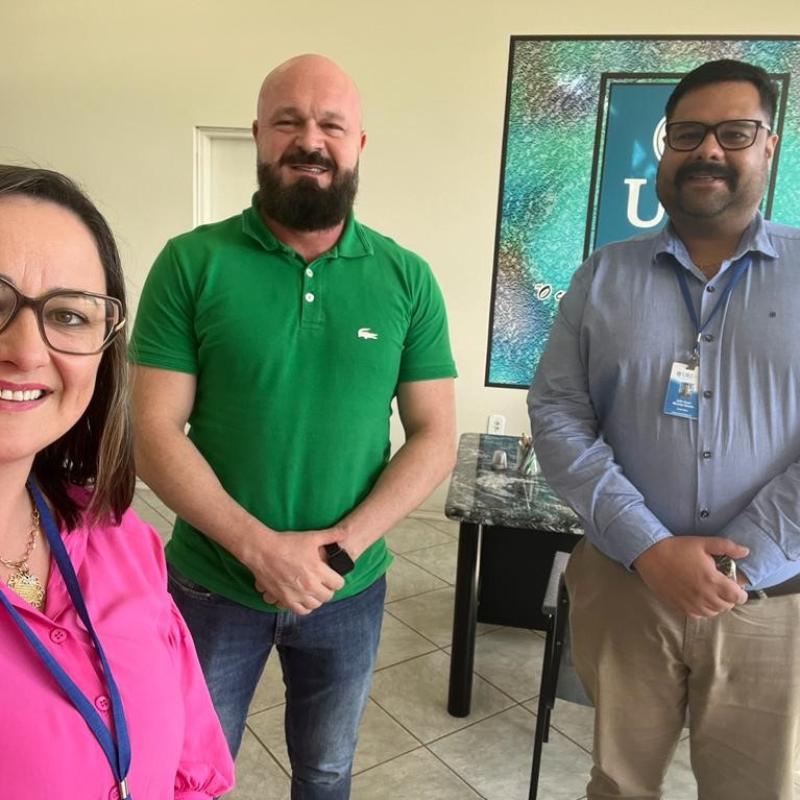 Foi recebido no Gabinete da Direção pelo Diretor Geral, professor Júlio Cesar Wincher Soares, e Diretora Acadêmica, professora Claudete Moreschi. “Momento para avaliar as primeiras semanas de trabalho, apresentar resultados, fortalecer a missão, com norte na visão da nossa universidade”, salientou Júlio.