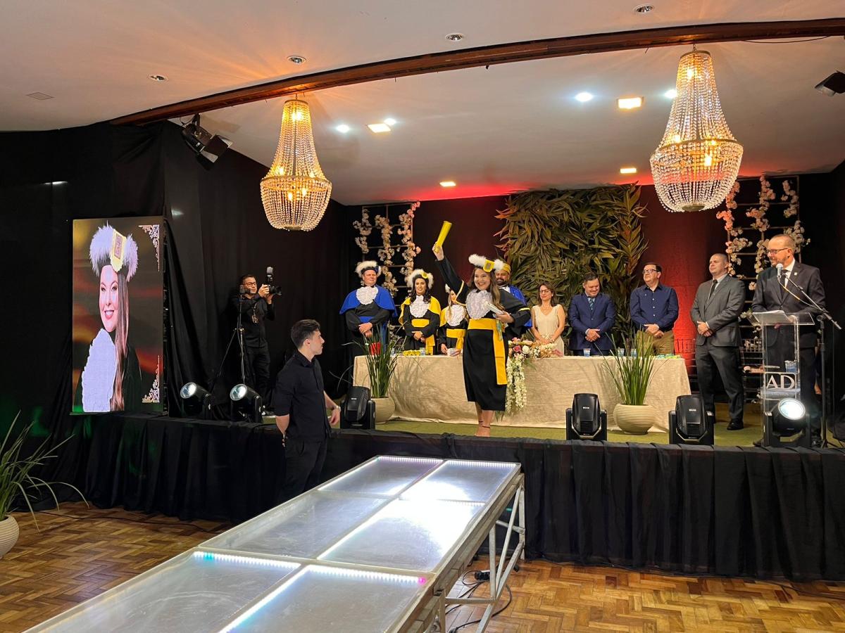 No último sábado (18), a Universidade Regional Integrada do Alto Uruguai e das Missões (URI) Câmpus de Santiago realizou a primeira colação de grau em dose dupla do calendário. A solenidade, que aconteceu no Grêmio dos Subtenentes e Sargentos da Guarnição de Santiago (GSSGS), às 19h, celebrou a I Turma de Biomedicina Semipresencial e a XX Turma de Farmácia Presencial, marcando um momento emocionante.