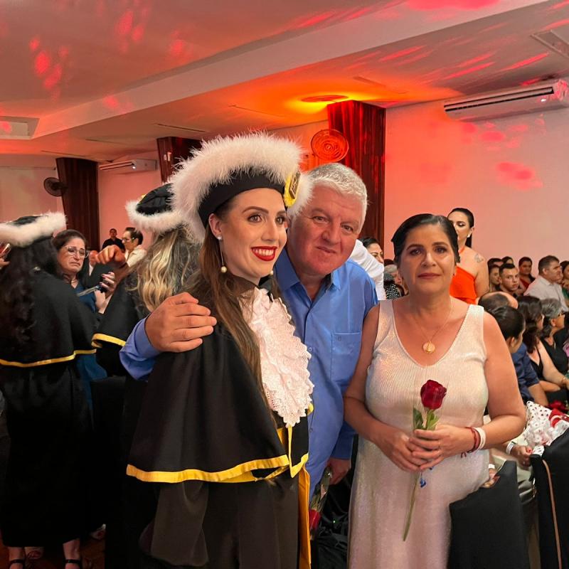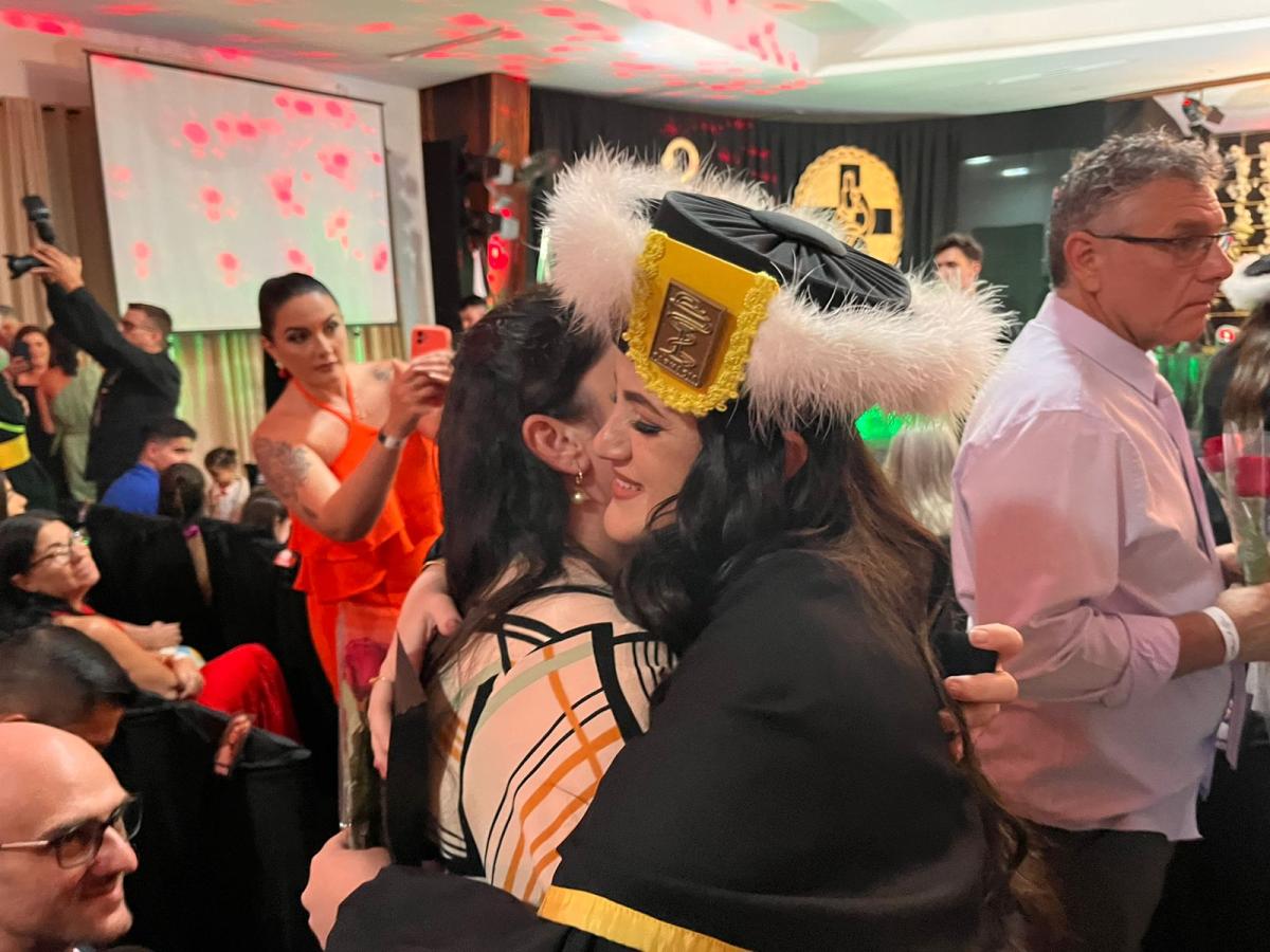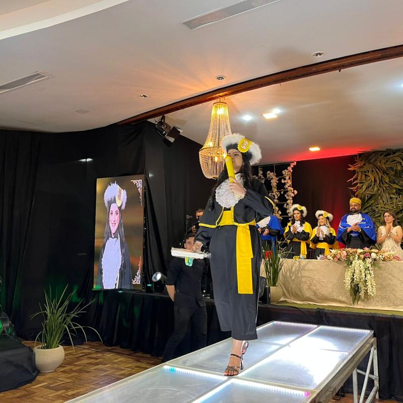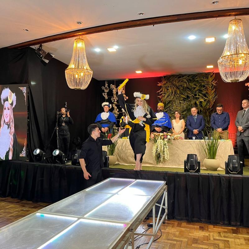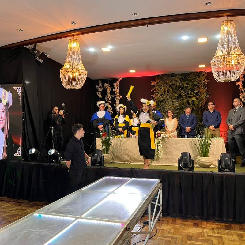 Os homenageados(as) da noite incluíram os(as) Professores(as) e colaboradores que marcaram a trajetória acadêmica dos formandos, em especial a Paraninfa da Turma, Professora Danieli Urach Monteiro e o Patrono da Turma de Biomedicina, Professor Marcelo Marques Tusi.