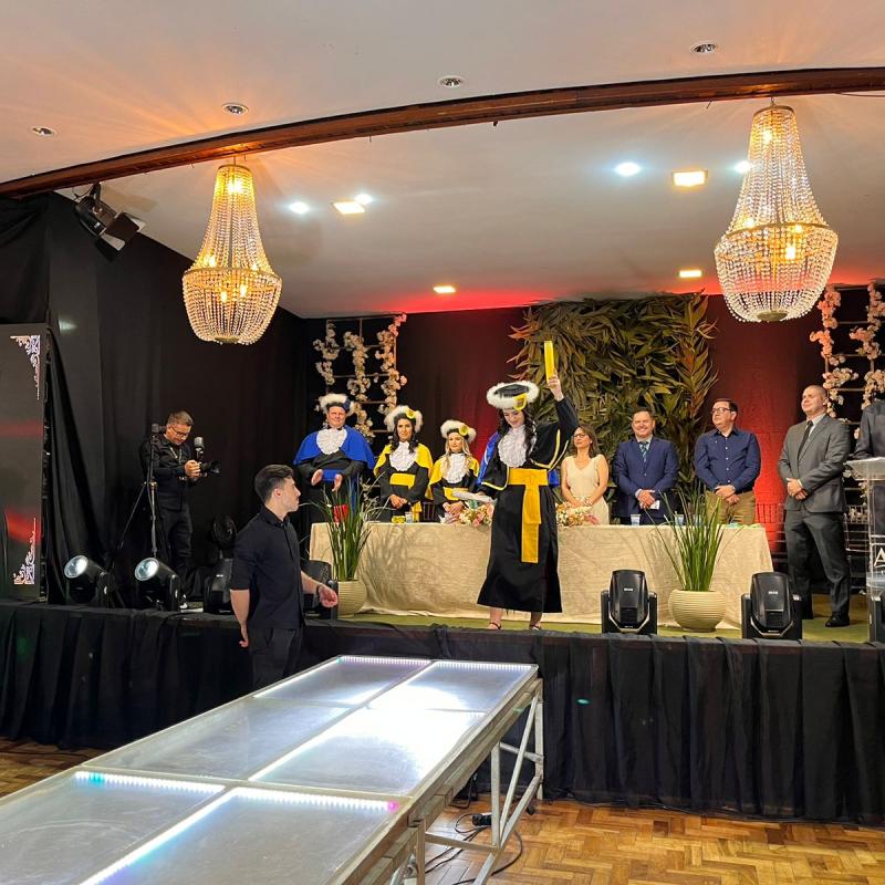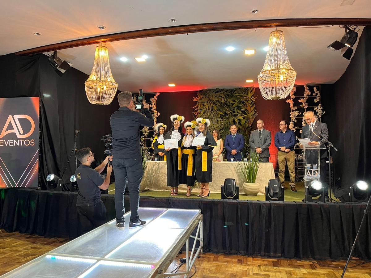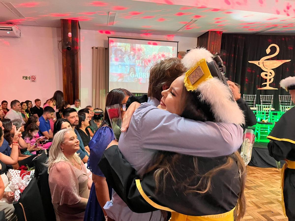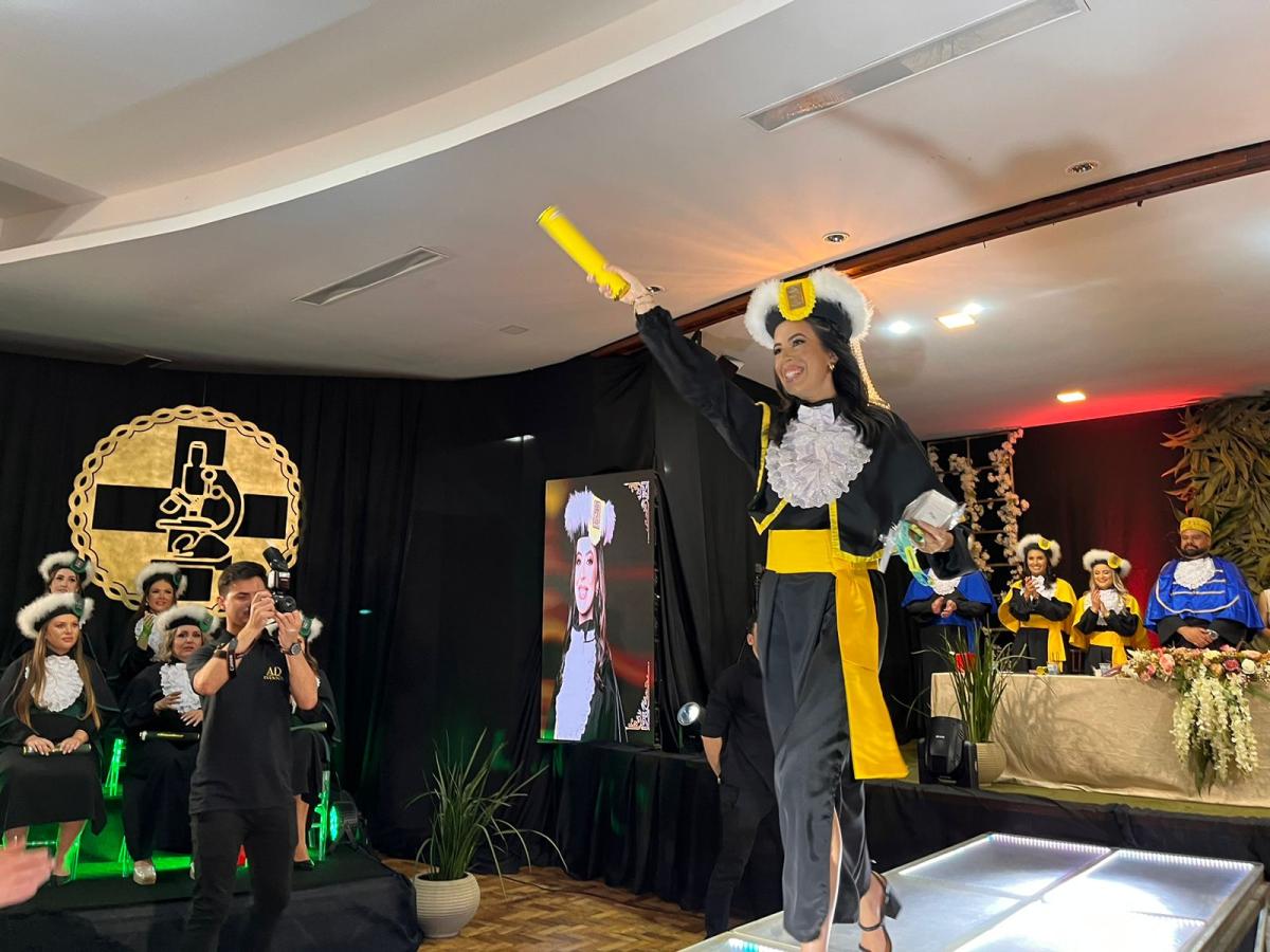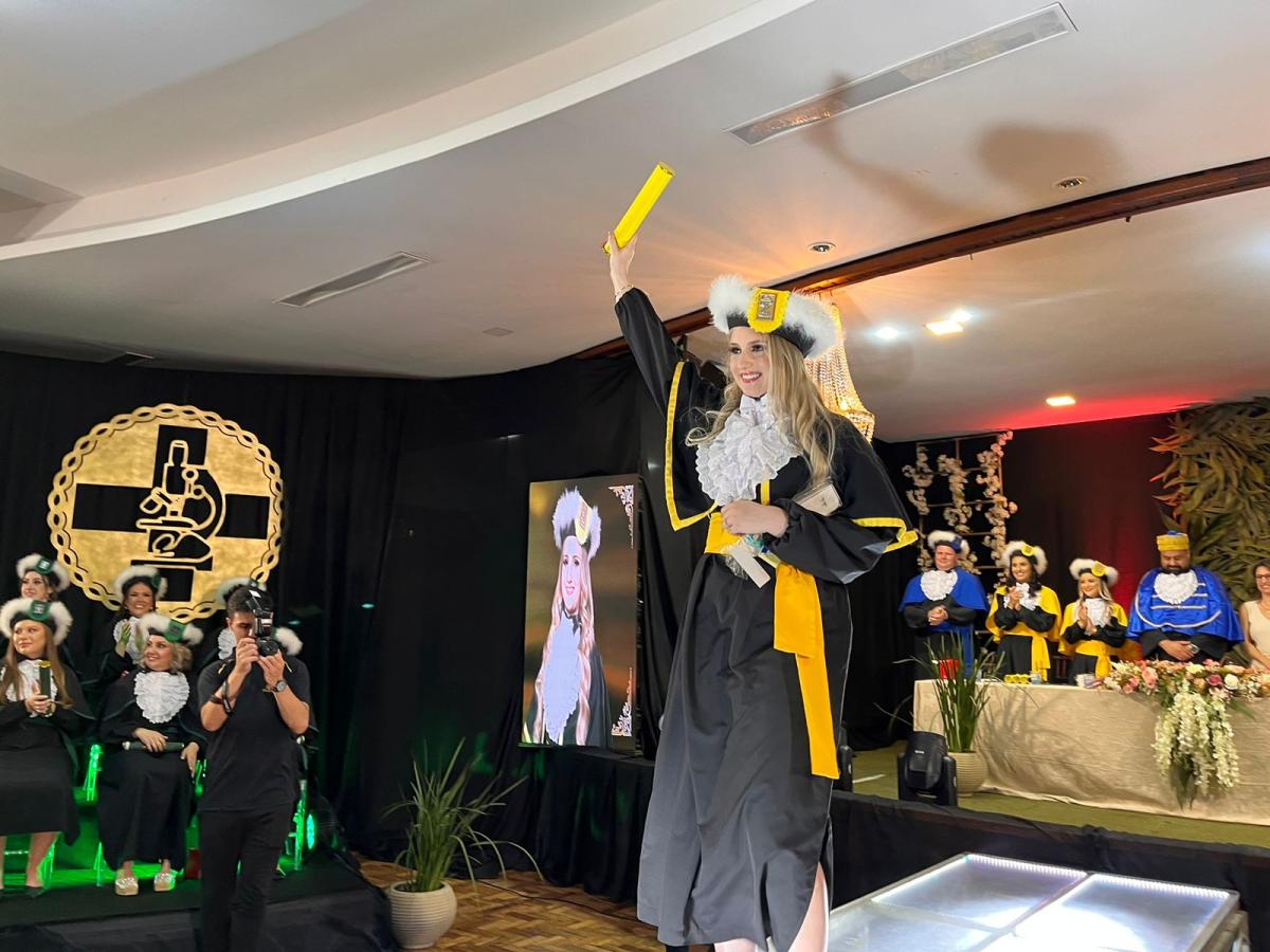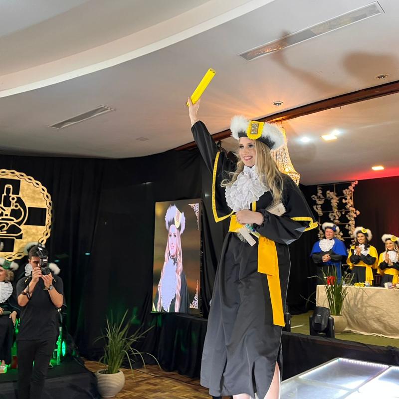Durante a solenidade, os formandos(as) Jaqueline do Nascimento (Biomedicina) e Vitor Rafael Oliveira Freires (Farmácia) foram os juramentistas, enquanto Jéssica Coró Somavilla, Brunnella Brum de Freitas e Mariana Ávila Monte assumiram os papéis de oradores(as) de suas respectivas turmas.