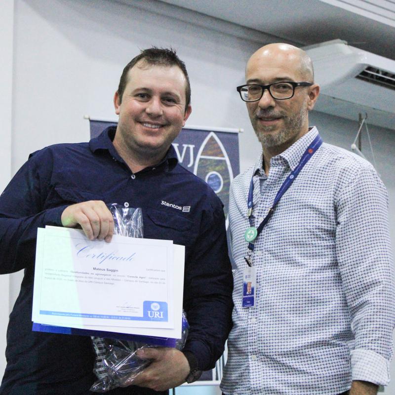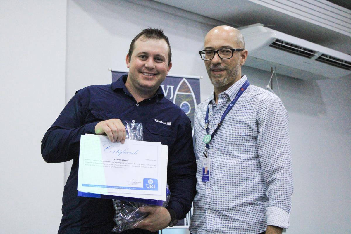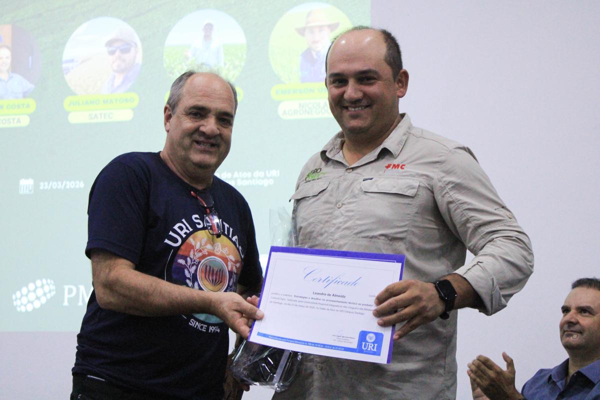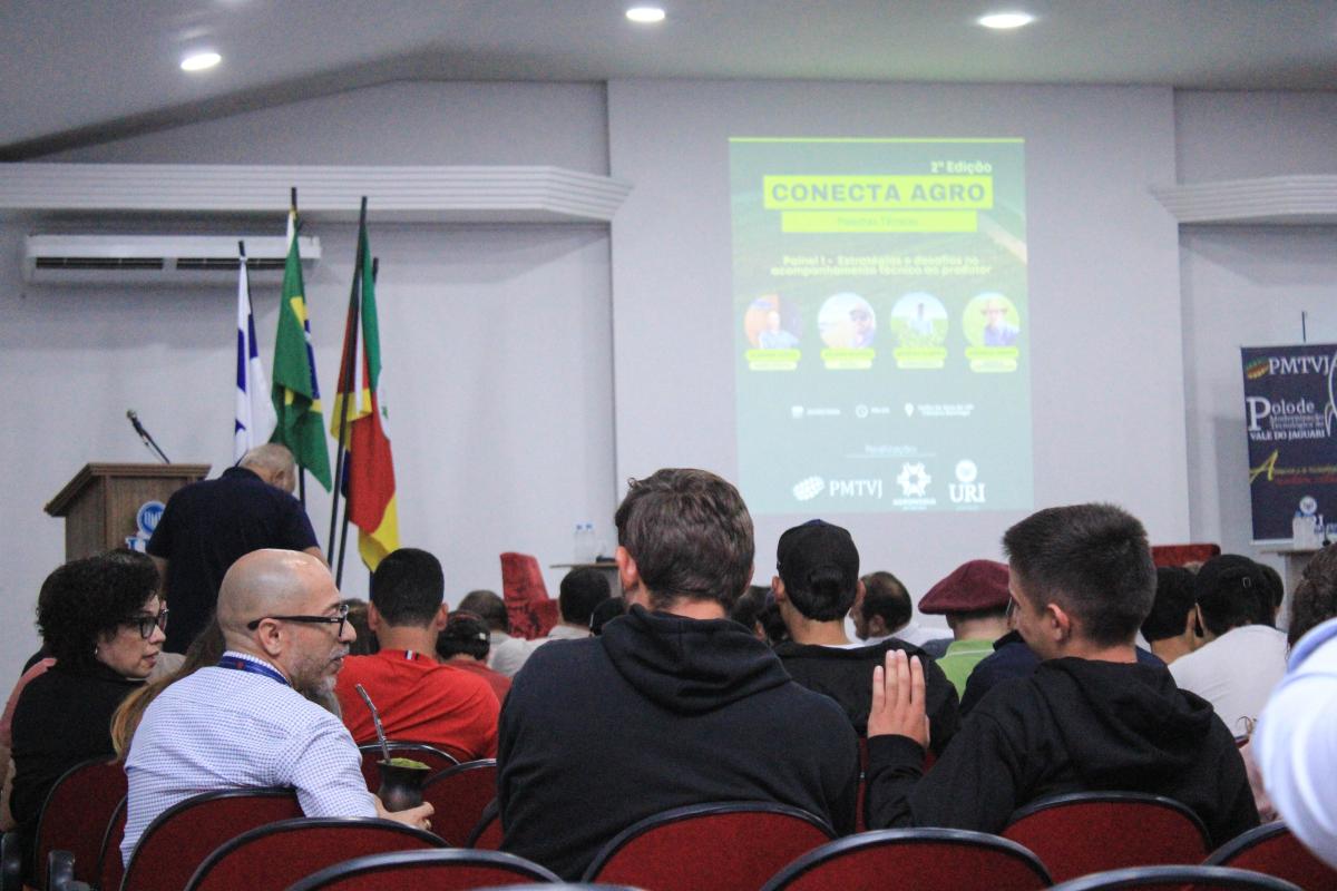 A Universidade Regional Integrada do Alto Uruguai e das Missões (URI) Câmpus Santiago sediou, na noite de segunda-feira (23), às 19h, a abertura do Conecta Agro. A atividade foi promovida pelo Curso de Agronomia, em parceria com o Polo de Modernização Tecnológica do Vale do Jaguari (PMTVJ), e marcou o início da programação da 2ª edição do evento na instituição. A noite de palestras reuniu estudantes, professores e profissionais do agronegócio para discutir o cenário atual da produção agrícola, além de apresentar inovações do setor e perspectivas de carreira.