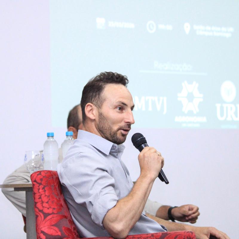 Durante o painel, o Secretário de Agricultura de Santiago, Tadeu Machado, também compartilhou sua trajetória profissional, destacando as transformações do setor ao longo dos anos, especialmente com o avanço da tecnologia. Em sua fala, incentivou os estudantes a buscarem conhecimento constante e a se prepararem para um mercado cada vez mais dinâmico.