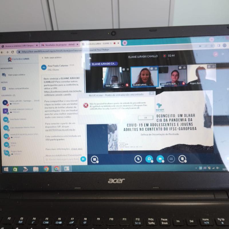No último dia 18, na sala da coordenação do curso de Psicologia, a professora Sibila Luft participou como membro externo da Banca de Defesa de Mestrado de Rogers Barbi, o qual foi orientado pela professora Doutora Eliane J. Camillo, docente do Instituto Federal de Santa Catarina (IFSC).