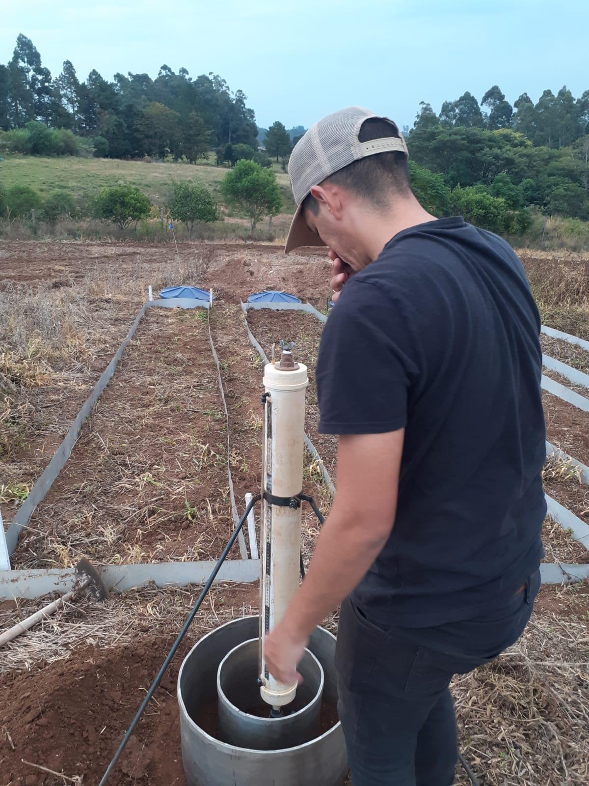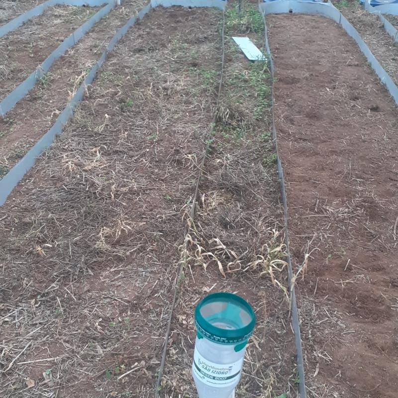 O projeto, intitulado “Mensuração dos prejuízos financeiros devido às perdas de nutrientes por erosão hídrica em sistemas plantio direto”, está sob orientação da Professora Graziele Dias Wendling e envolve a análise comparativa de quatro parcelas de solo. Três delas estão cultivadas com espécies distintas — nabo forrageiro, milheto e uma mistura de culturas (mix) — enquanto a quarta parcela permanece com o solo desnudo, sem qualquer tipo de cobertura vegetal.