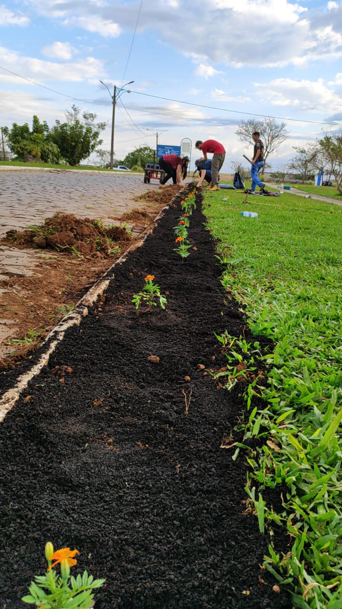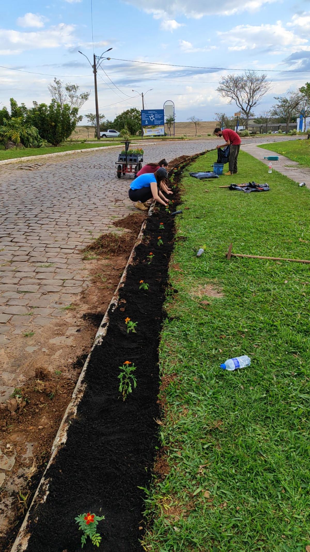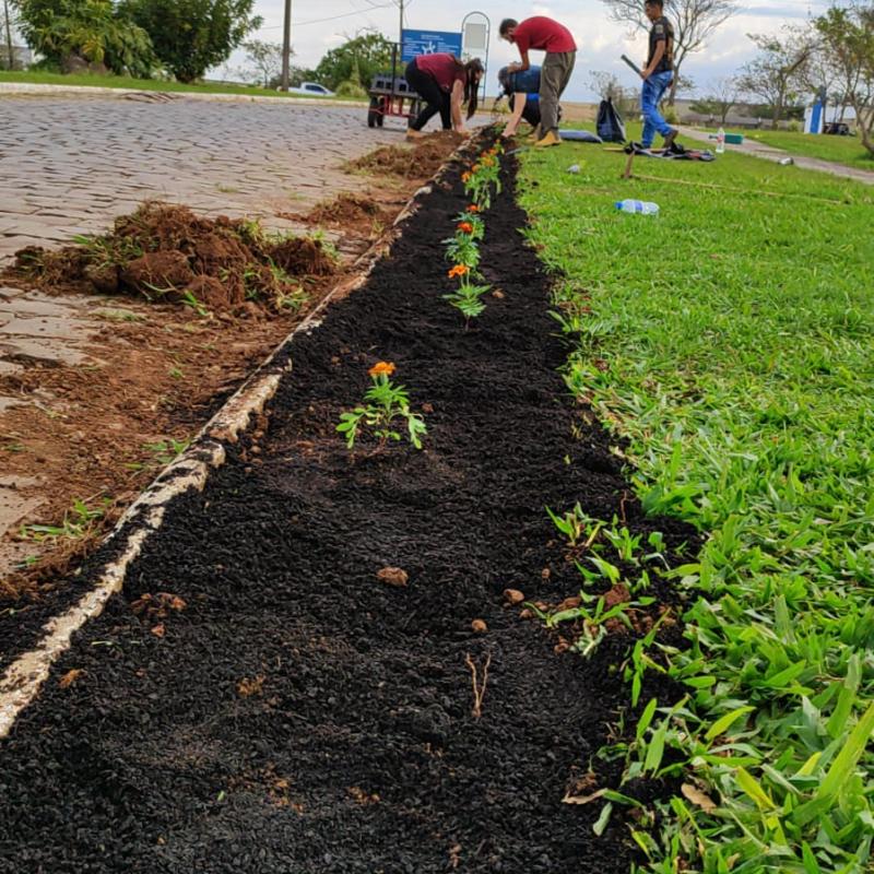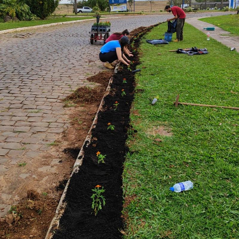 Desse modo, o trabalho dos estudantes foi iniciado com o plantio de flores ornamentais nos canteiros da Universidade, como parte das atividades desenvolvidas pelo Viveiro Florestal da URI Santiago.