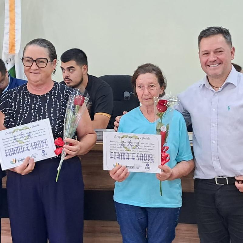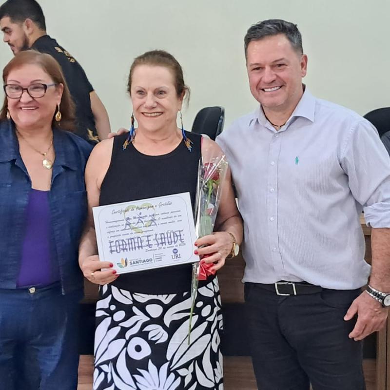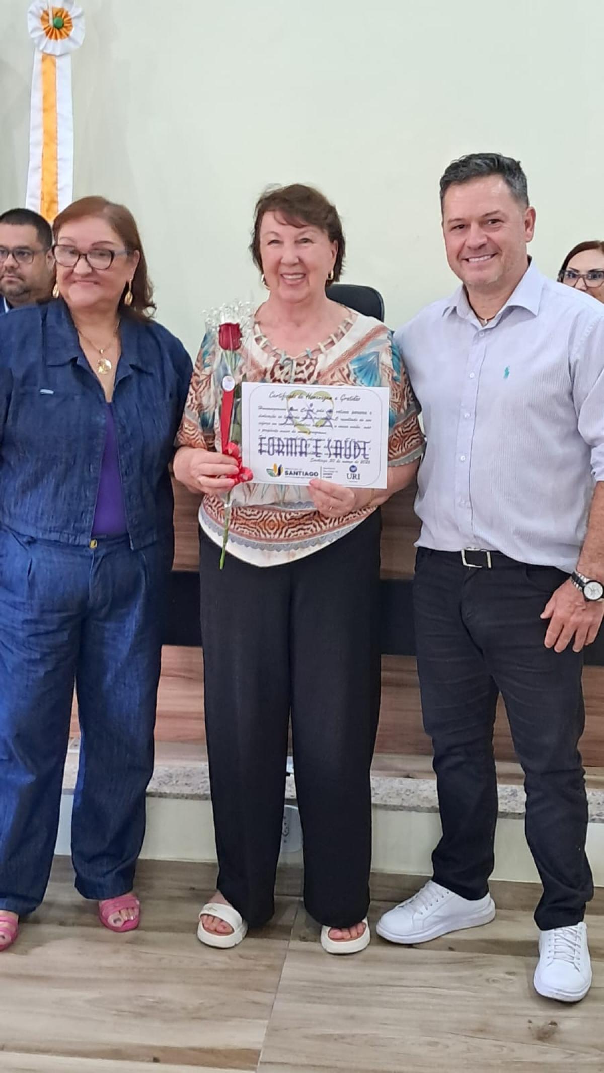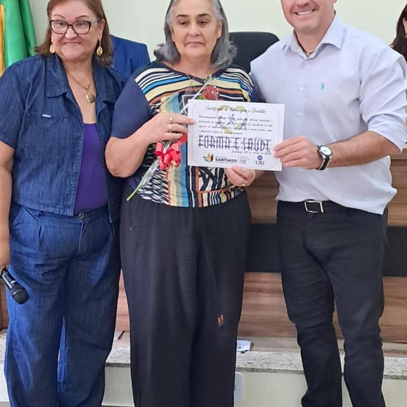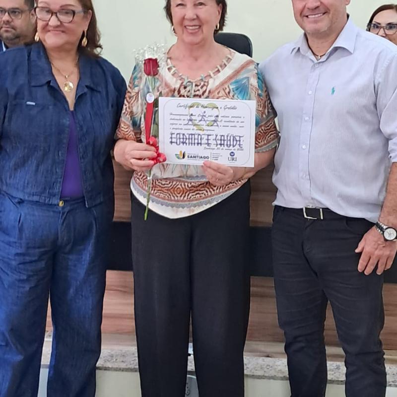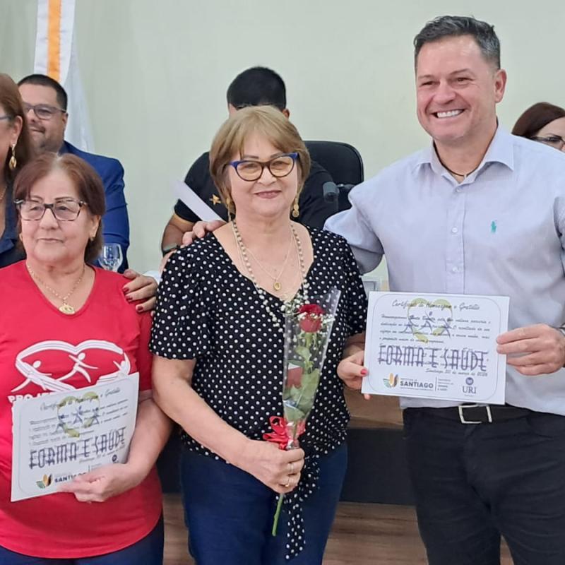 Aconteceu nesta segunda-feira (30), a entrega de uma menção honrosa em reconhecimento aos 23 anos do Projeto Forma e Saúde. A homenagem ocorreu na câmara de vereadores de Santiago, durante sessão ordinária.