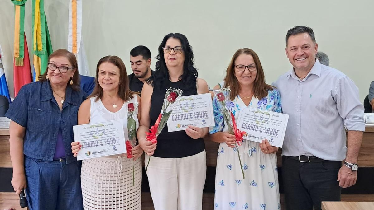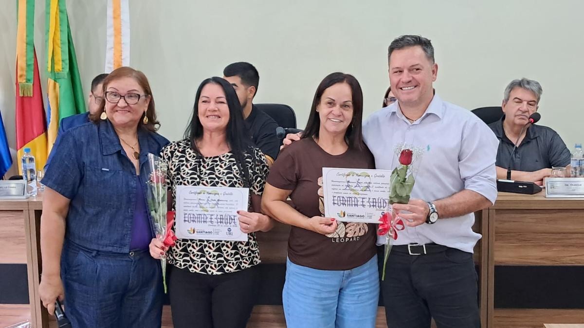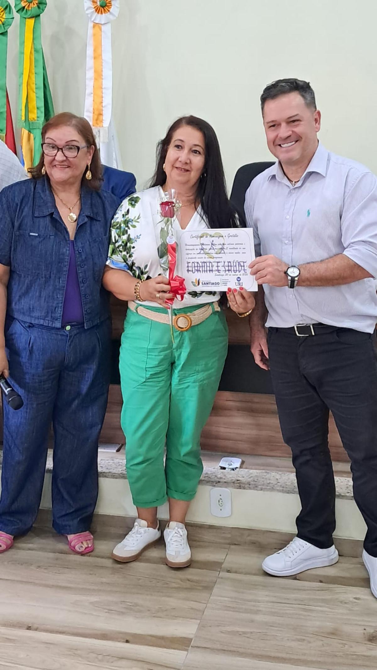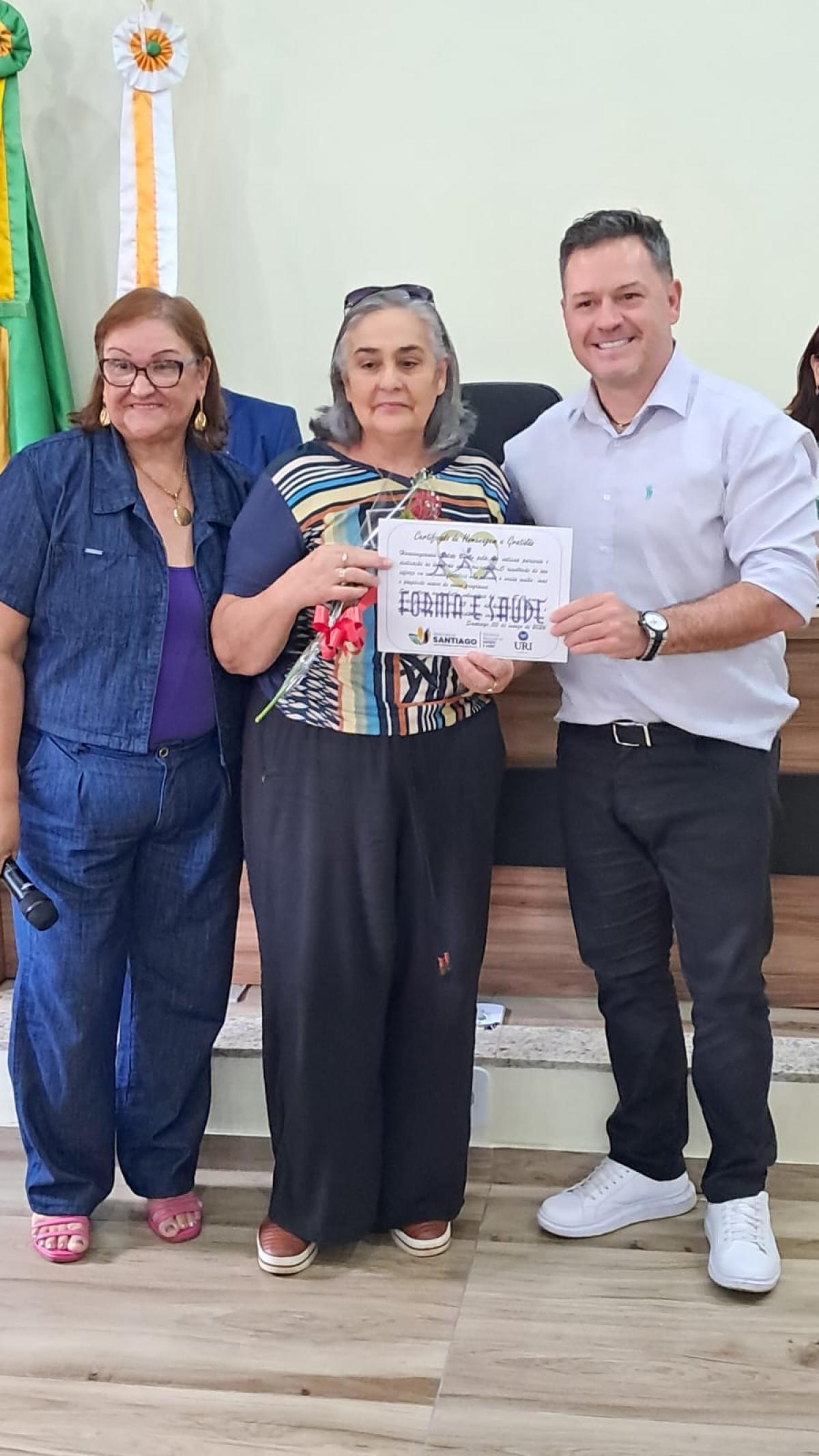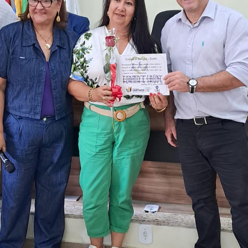 Aconteceu nesta segunda-feira (30), a entrega de uma menção honrosa em reconhecimento aos 23 anos do Projeto Forma e Saúde. A homenagem ocorreu na câmara de vereadores de Santiago, durante sessão ordinária.
