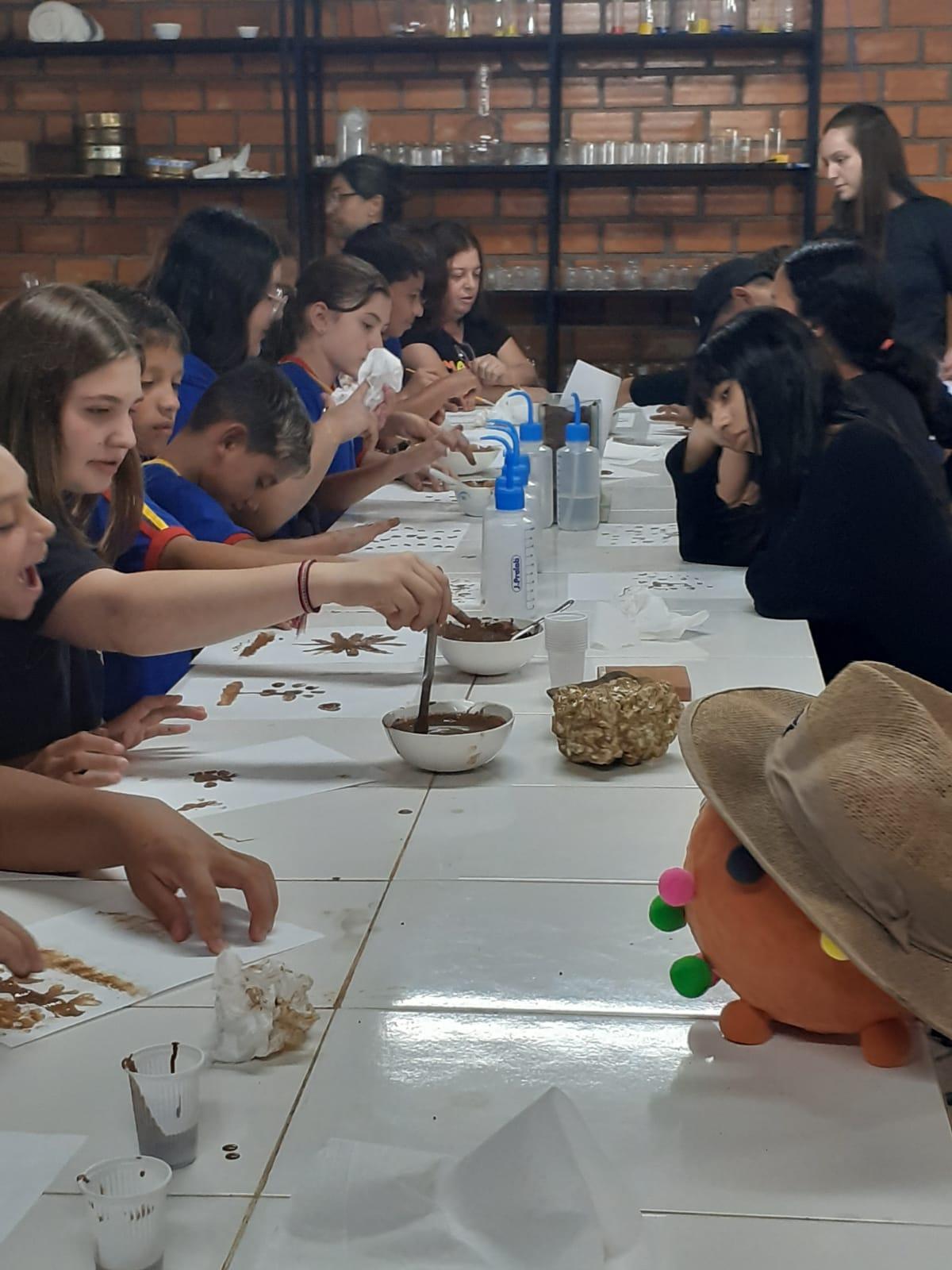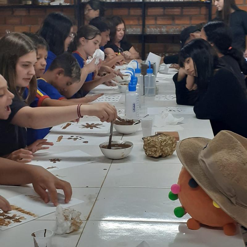 Durante a visita, os alunos participaram de uma atividade educativa e interativa, aprendendo sobre o papel fundamental do solo na natureza e sobre como ocorre a nutrição das plantas. De maneira lúdica, também puderam colocar a mão na terra – literalmente – ao realizarem pinturas com tinta ecológica produzida à base de solo, demonstrando na prática como elementos da natureza podem ser utilizados de forma sustentável e criativa.