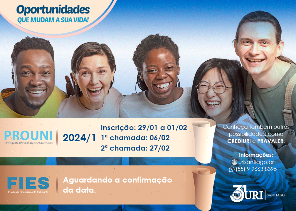 Clique aqui para conferir o edital, além de cronograma/informações do PROUNI para ingressar na URI Santiago.