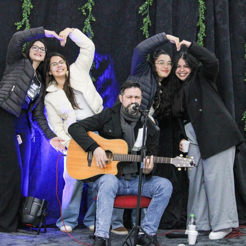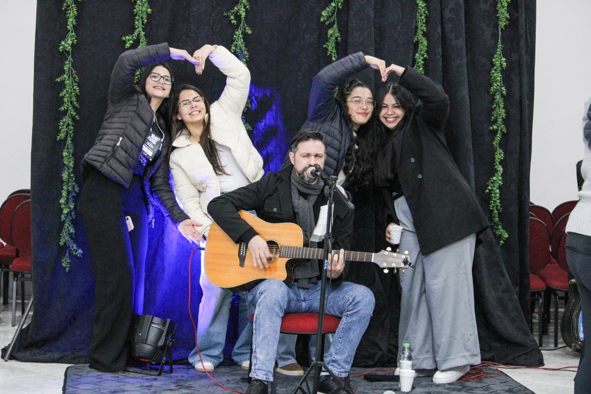 Entre as conferências, houve momentos de pausa. O que também faz parte da aprendizagem: a música acústica do Professor Tiago Mucenecki preencheu o auditório com um respiro sonoro, e o coffee break se transformou em espaço de conversa informal, onde as ideias e alegria circularam livremente.