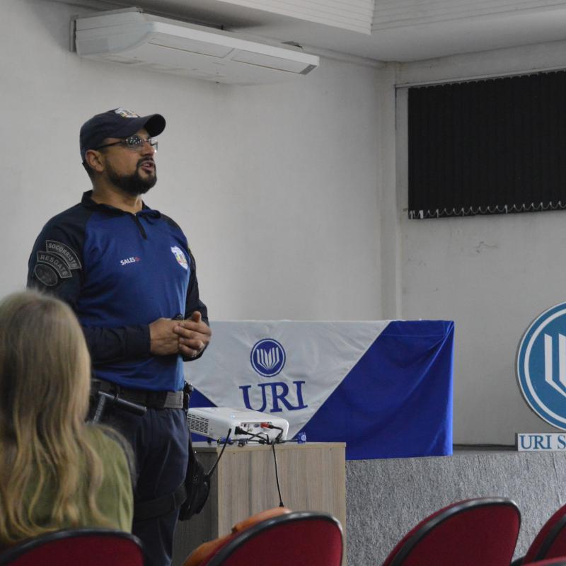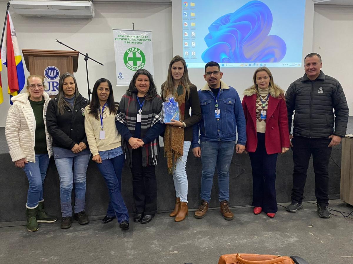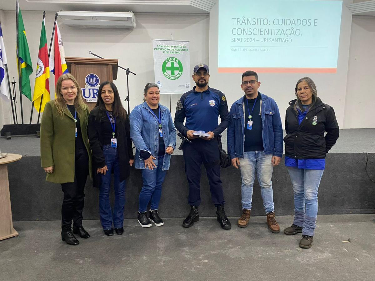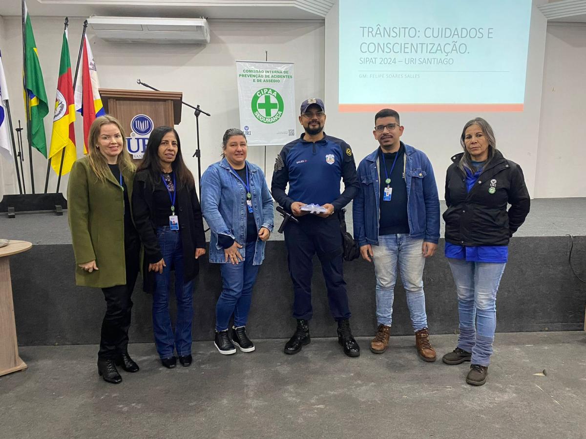 Para isso, a SIPAT 2024 da URI Santiago contou com a participação de profissionais de diversas áreas, como: o Soldado Taulick, do Corpo de Bombeiros de Santiago; a Psicóloga Luciéli Sodré de Moura, Professora do Curso de Psicologia da URI Santiago; o Guarda Municipal Felipe Soares Salles, da Guarda Municipal de Santiago; os integrantes da ONG Lixo Zero de Santiago, Simone de Lima Teixeira, Anselmo Duarte e Gustavo Reiquel; e a Advogada Eveline Simões, Docente e responsável pelo Setor Jurídico da URI Santiago.