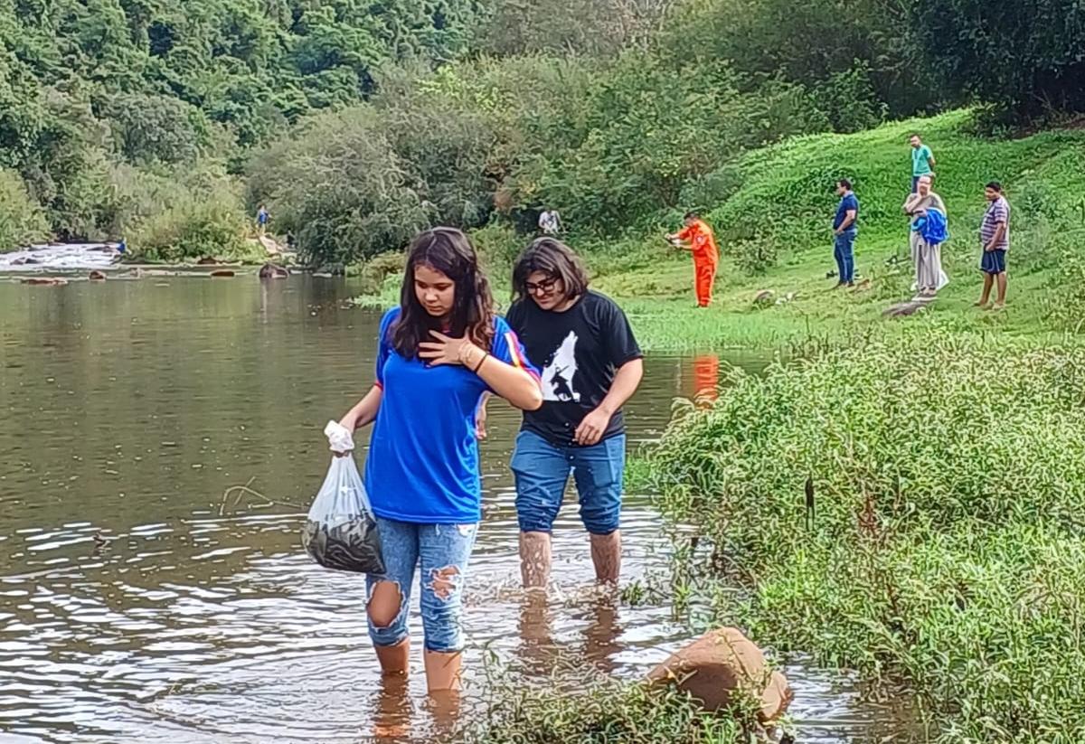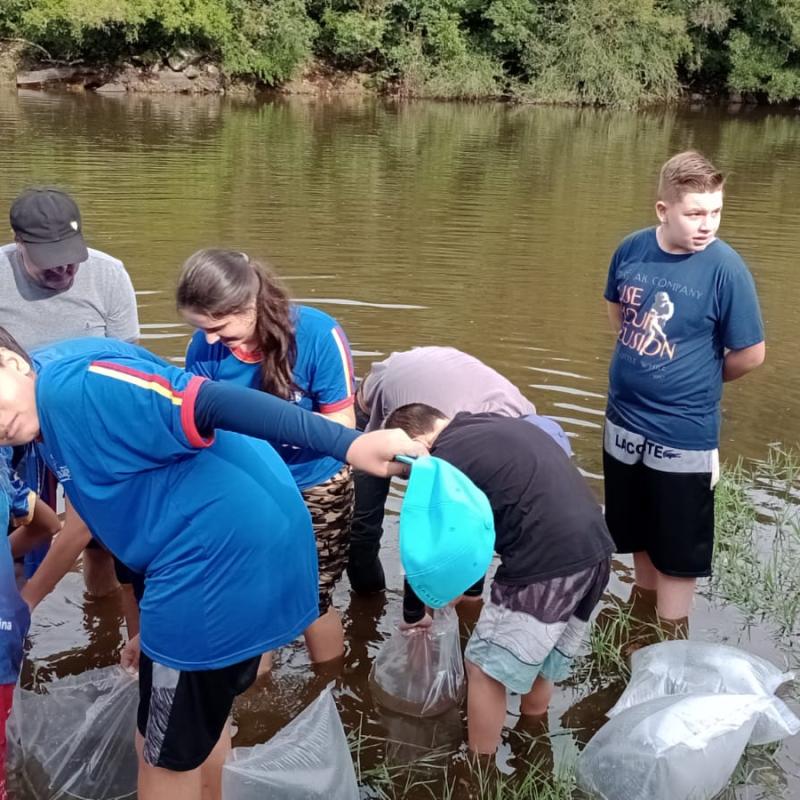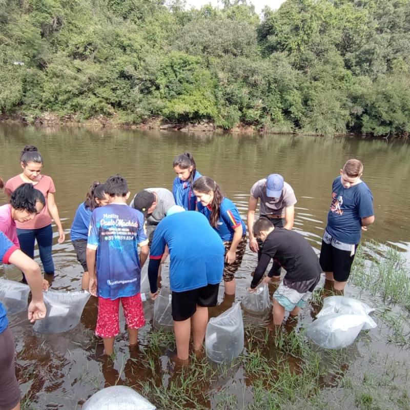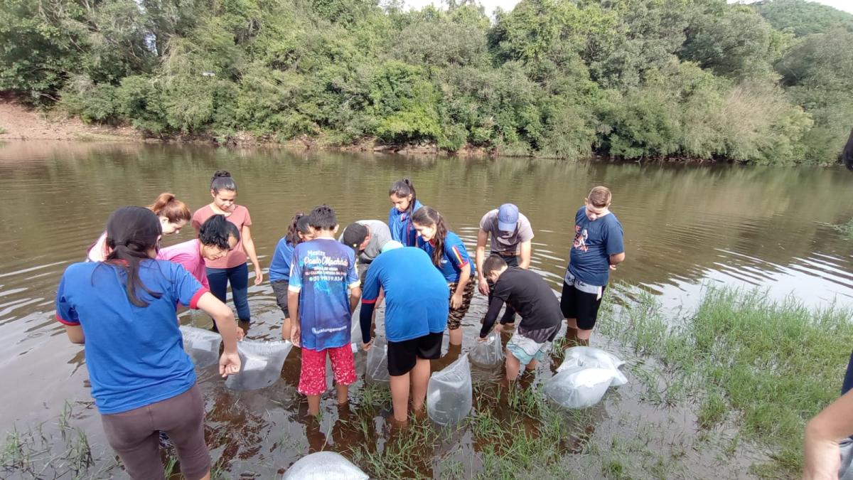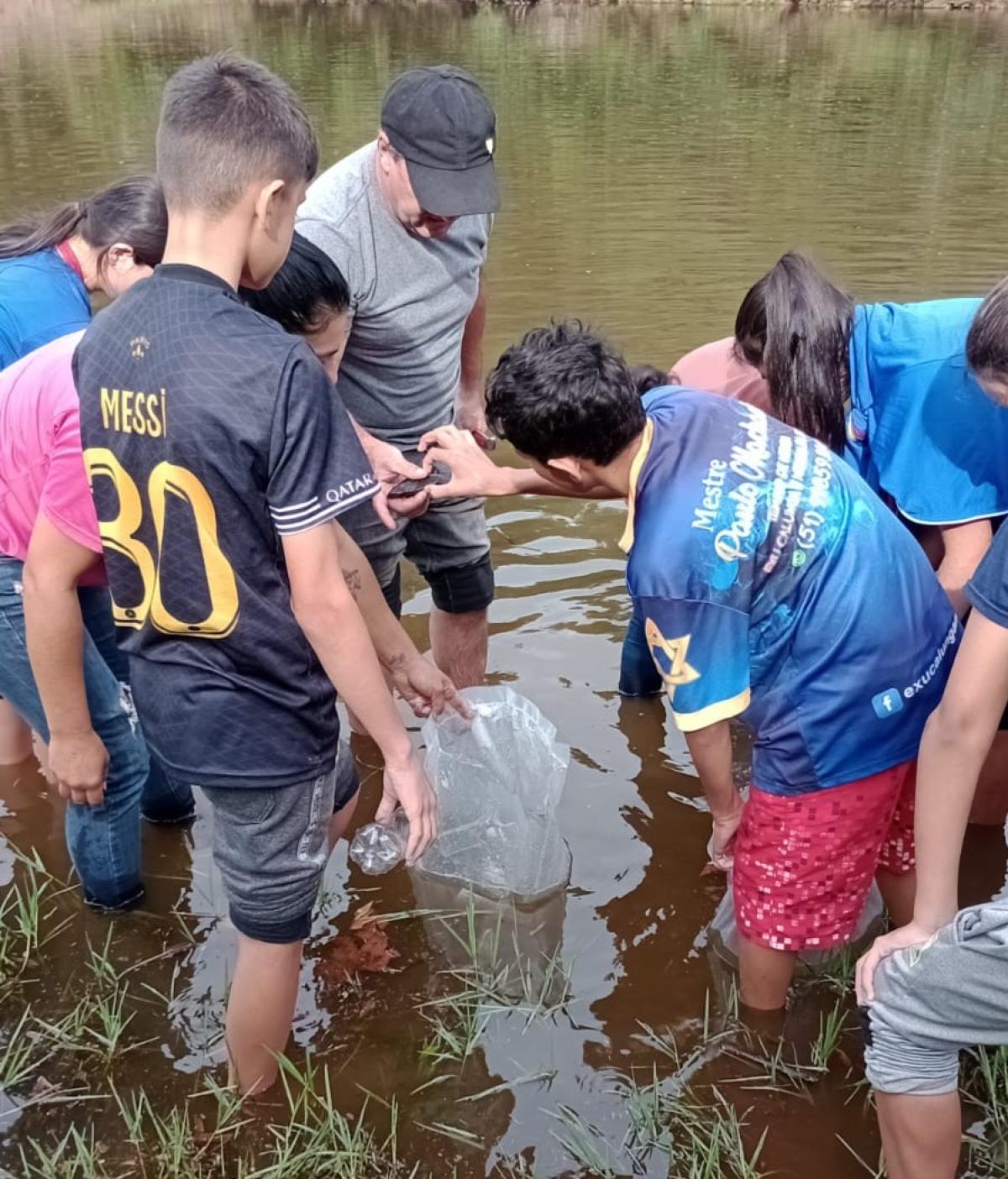 A soltura de alevinos é uma ação importante para a manutenção da fauna aquática, pois permite a renovação das espécies nativas de peixes.