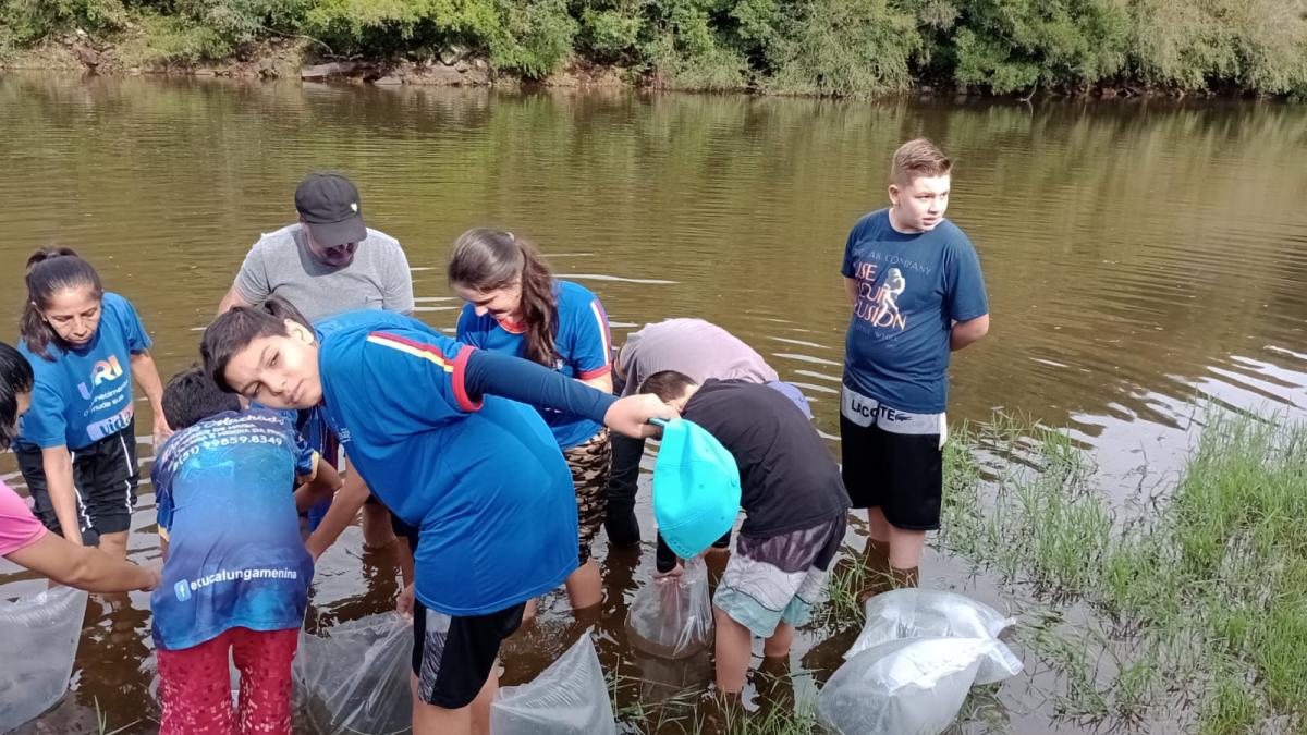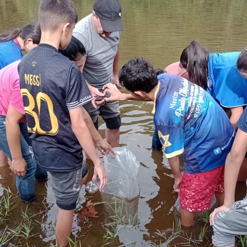 O Dia Mundial da Água foi em 22 de março, e, para comemorar a data, a Secretaria do Meio Ambiente de Santiago proporcionou uma atividade prática de educação ambiental para estudantes da escola municipal Manoel Abreu, do 7º ano, na última quinta-feira (30), na localidade de Ernesto Alves. Os estudantes soltaram alevinos no rio Jaguarizinho, cujo principal objetivo foi conscientizar sobre a importância da preservação dos rios e da biodiversidade aquática.
