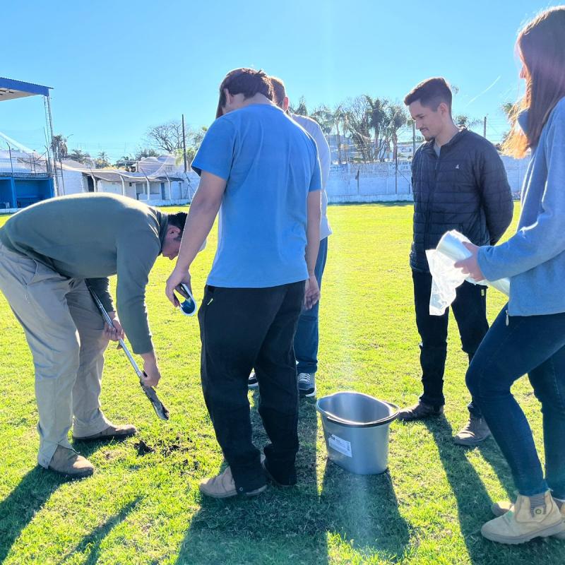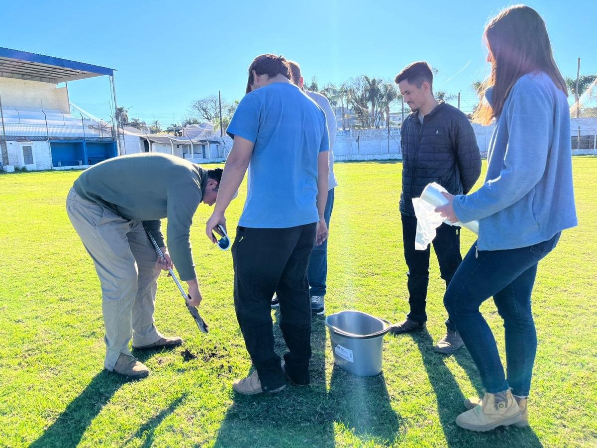 Sendo assim, o trabalho teve início na última segunda-feira (02), com uma visita técnica da Universidade nos espaços do Cruzeiro, para coleta de amostras de solo e vistoria da estrutura pertencente ao estádio. As atividades foram acompanhadas pelos técnicos responsáveis: Professor Claiton Ruviaro do Curso de Agronomia, Prof. Higor Machado, coordenador do PMTVJ e a Profa. Rosangela Montagner, juntamente com os bolsistas e estagiários do Laboratório de Solos da Universidade.