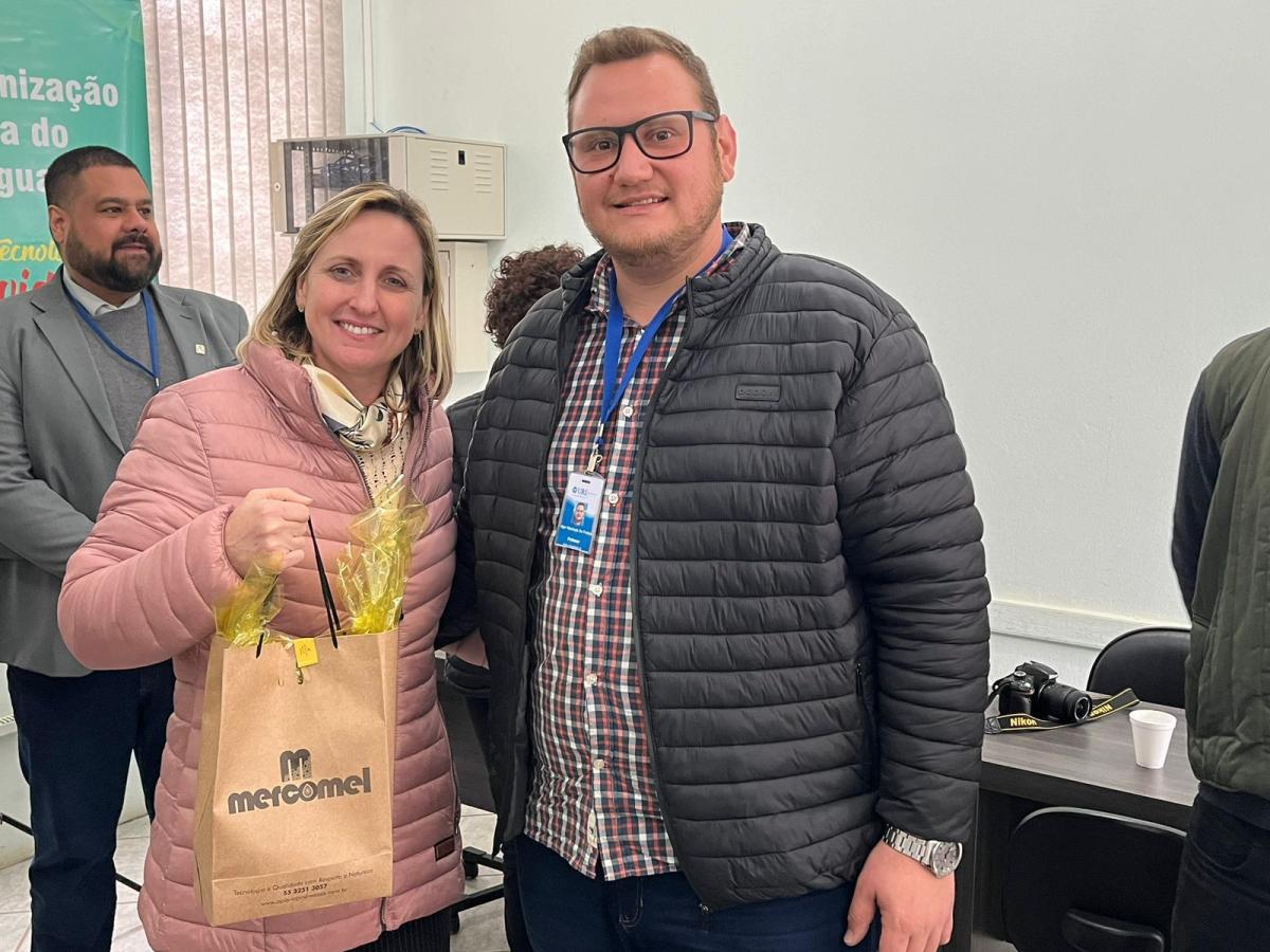 Ao final do encontro, o Gestor do PMTVJ, Prof. Higor Machado de Freitas realizou a entrega de uma lembrança à Coordenadora do Comitê Estratégico do Inova RS, Solange Binotto Fagan e ao Diretor do Departamento de Ambientes de Inovação da SICT, Everaldo Daronco.