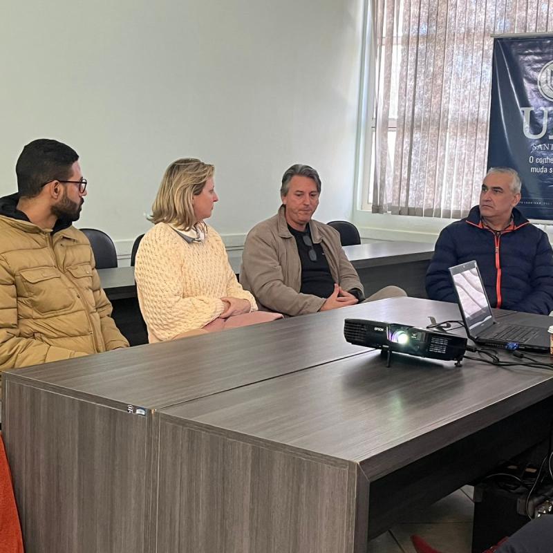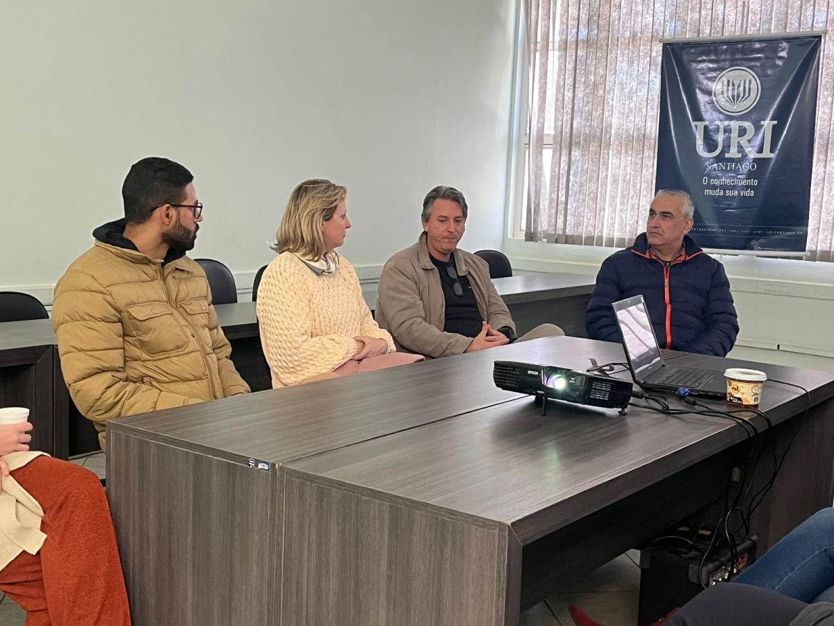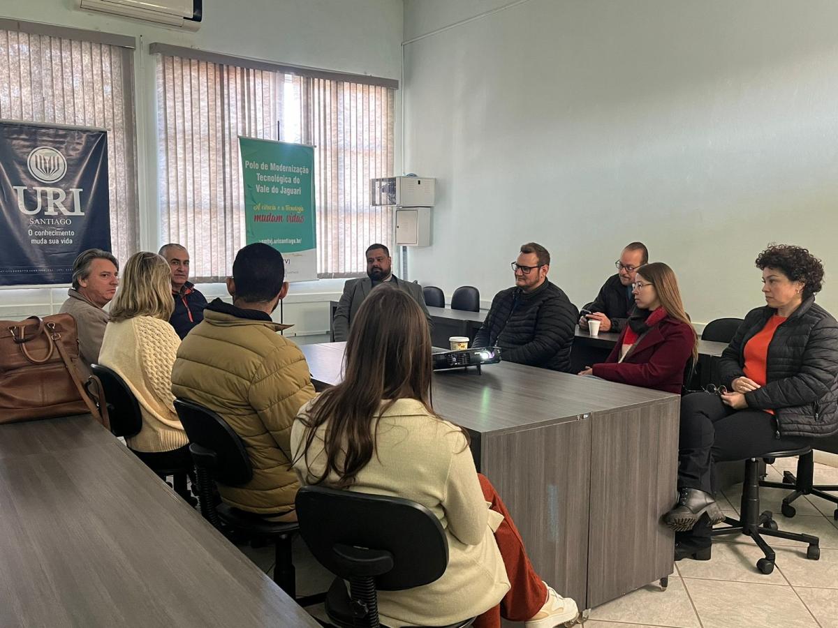 Na manhã da última terça-feira (30), a Universidade Regional Integrada do Alto Uruguai e das Missões (URI), Câmpus de Santiago, recebeu a Comitiva do Programa Inova RS. O encontro realizado na Sala do Conselho de Câmpus, contou com a presença do Diretor Geral, Professor Júlio César Wincher Soares, do Gestor do Polo de Modernização Tecnológica do Vale do Jaguari (PMTVJ) Prof. Higor Machado de Freitas e das coordenadoras das propostas aprovadas no último edital InovaAgro de 2023, Profa. Clarissa Obem dos Santos e Profa. Graziele Feltrin Dias Wendling.