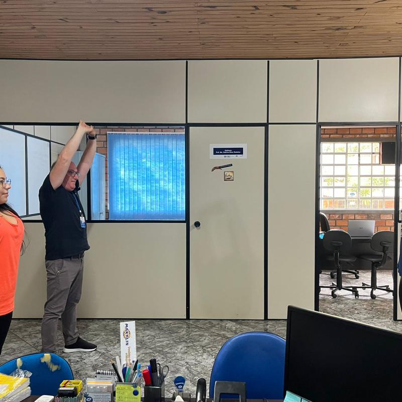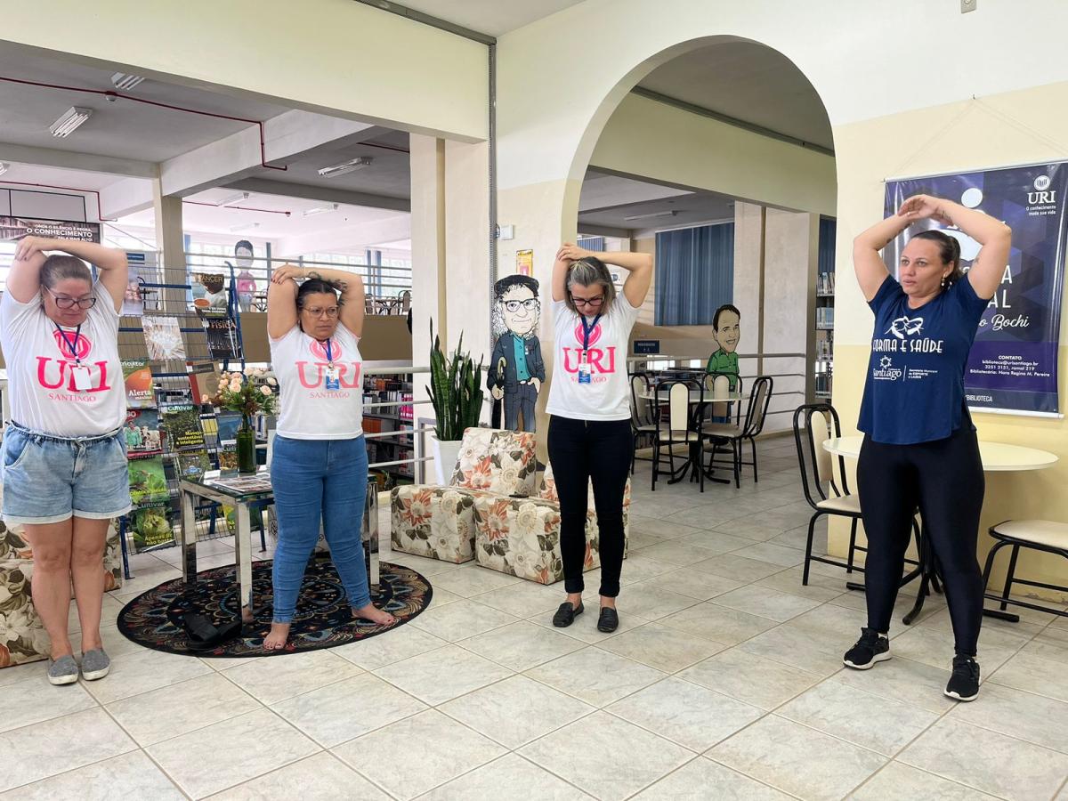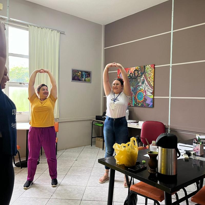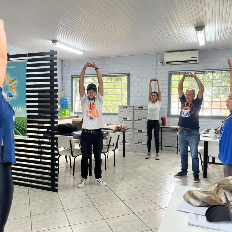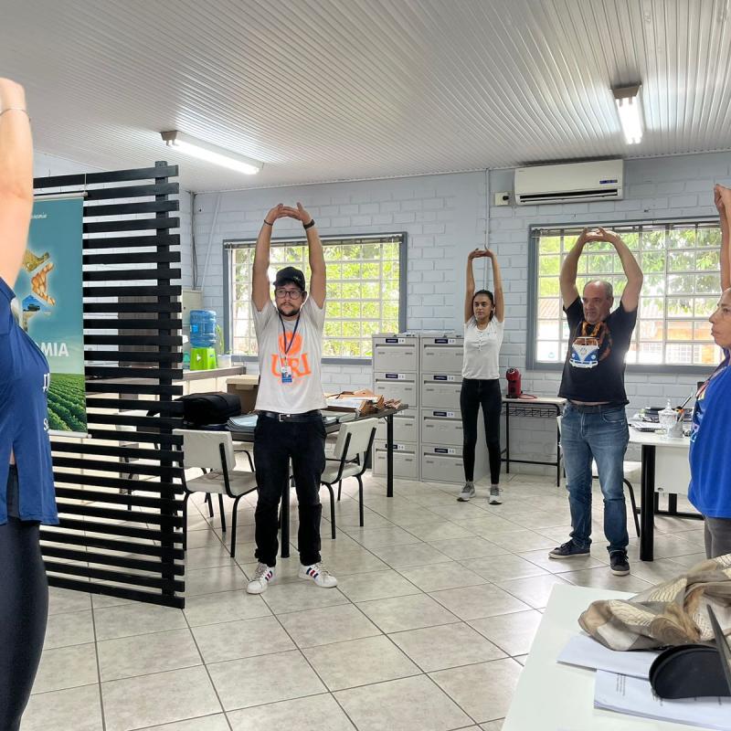 A iniciativa foi desenvolvida pela Comissão Interna de Prevenção de Acidentes e Assédio (CIPA) da URI Santiago, com o intuito de inserir na rotina dos colaboradores da Instituição, a prática do exercício físico. A ação é ministrada pela Educadora Física, Rhamona Rocha.