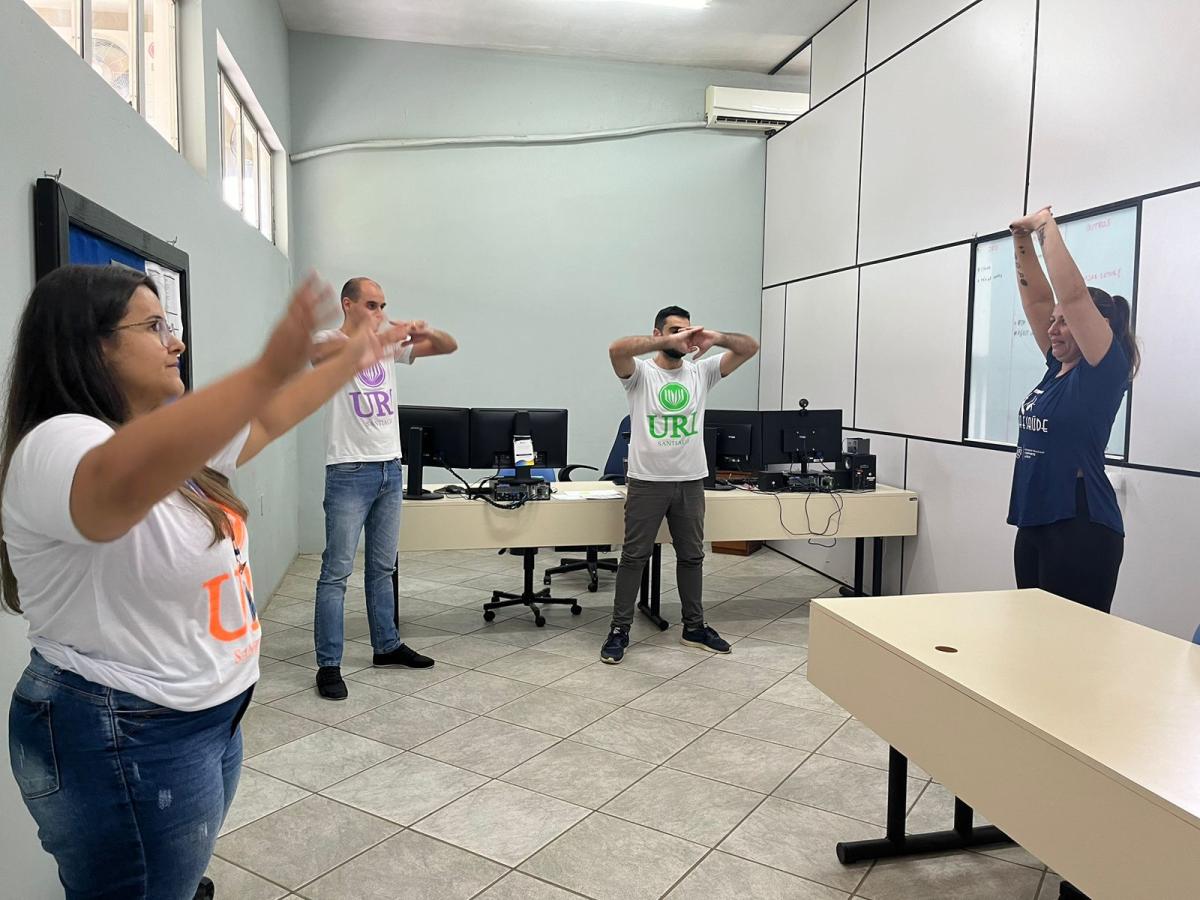 Pensando em promover uma melhor condição de trabalho e qualidade de vida aos seus colaboradores, a Universidade Regional Integrada do Alto Uruguai e das Missões (URI) Câmpus de Santiago, implementou a prática da Ginástica Laboral nas coordenações de Curso e nos setores Administrativos e de Apoio. A atividade ocorre semanalmente, sendo realizada no Câmpus e na Escola de Educação Básica da URI.