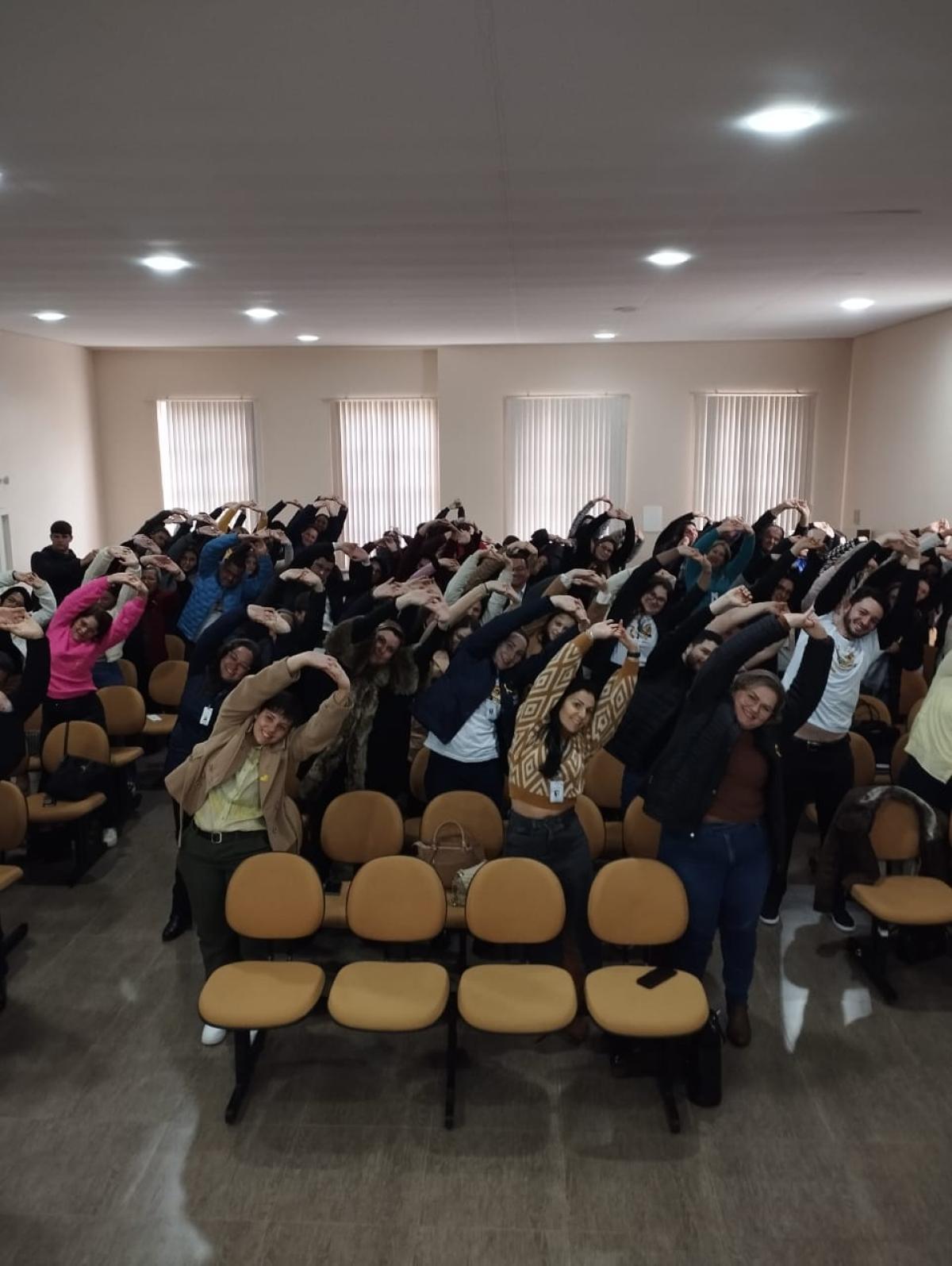 Já na tarde de segunda-feira (02), os docentes e os Técnicos-Administrativos e de Apoio realizaram no momento da ginástica laboral, uma ação em prol do bem-estar e do acolhimento. Desse modo, foi ministrada pela colaboradora e Professora do projeto Forma e Saúde, Rhamona Rocha, uma dinâmica visando estimular a conversa e a empatia entre os diversos setores da Universidade.